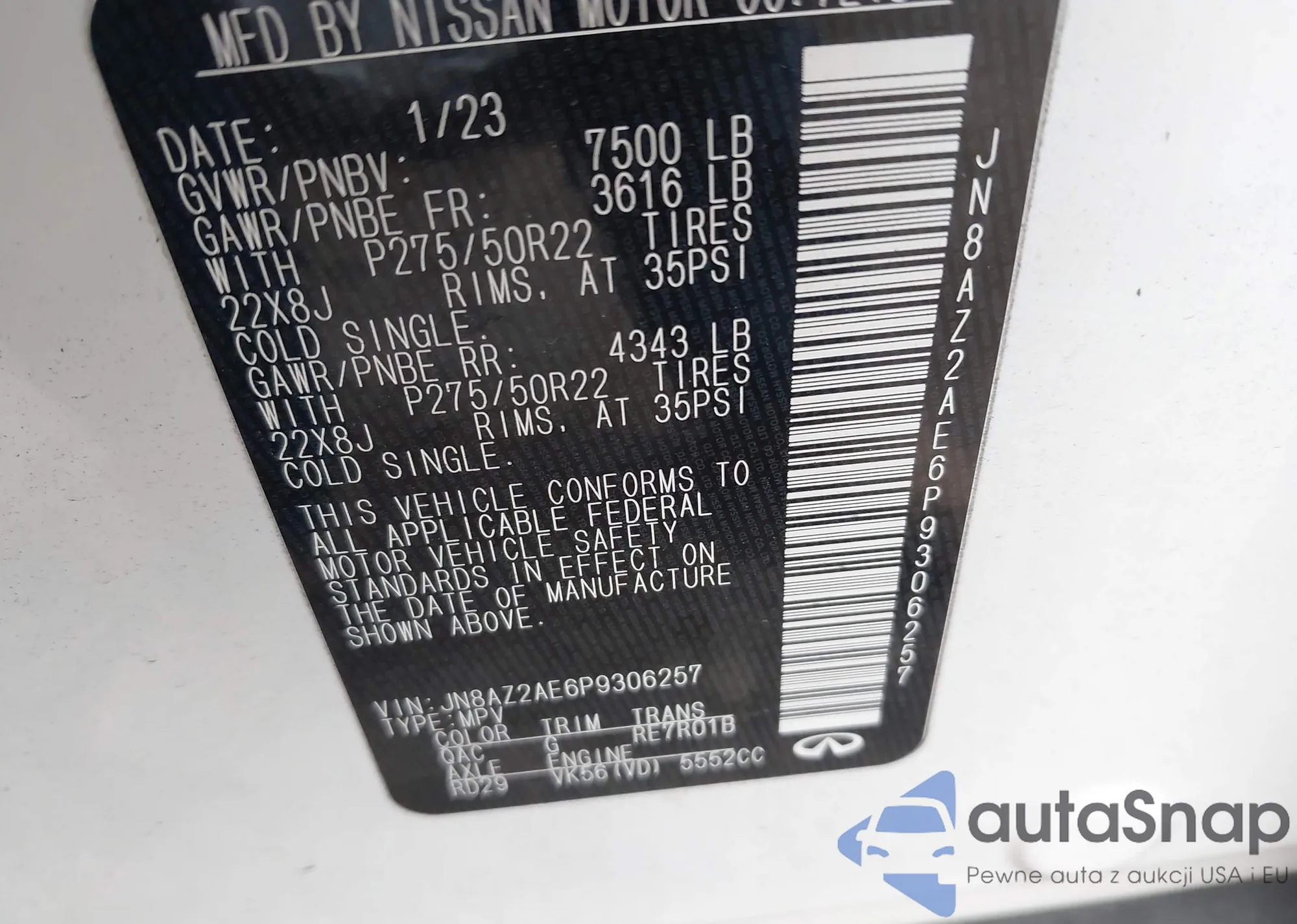 • VIN JN8AZ2AE6P9306257