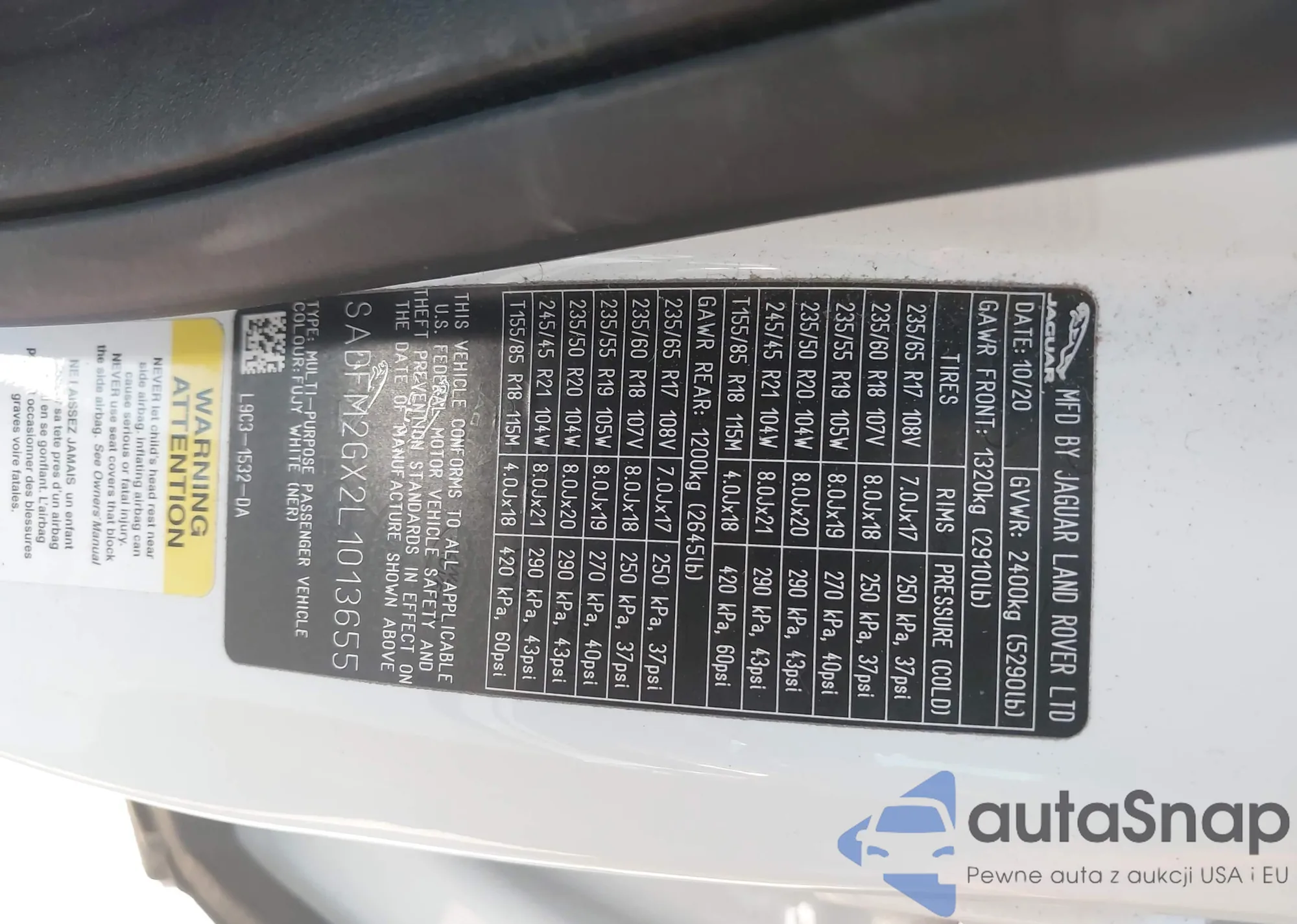 LOT: 43885369 VIN: SADFP2FX8L1006766
