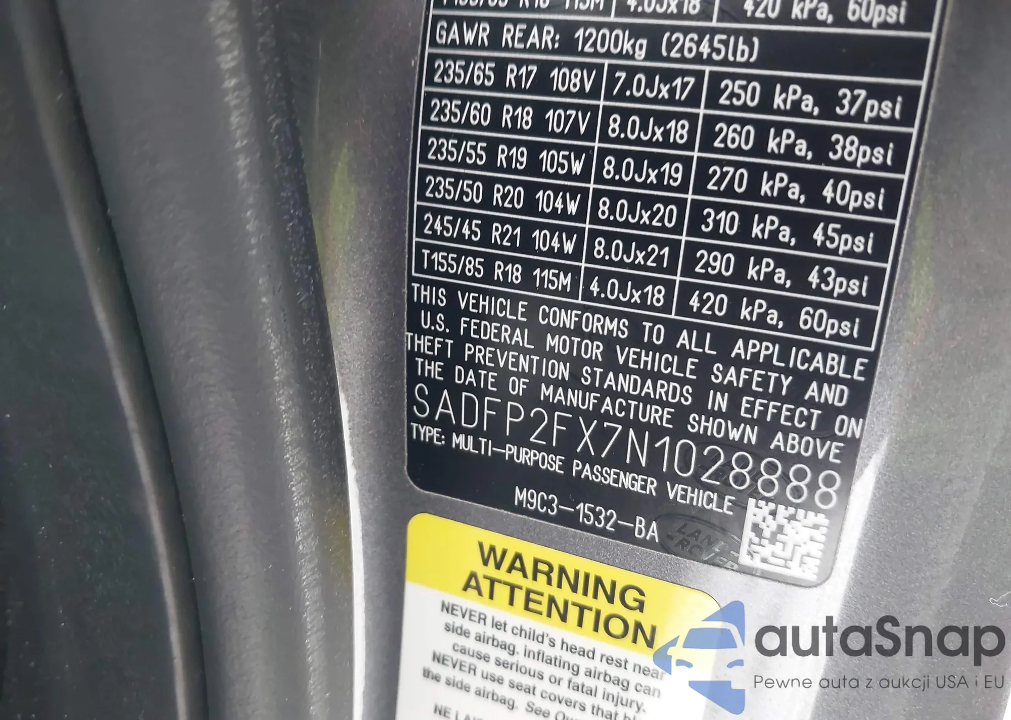 LOT: 43932153 VIN: SADFP2FX7N1028888