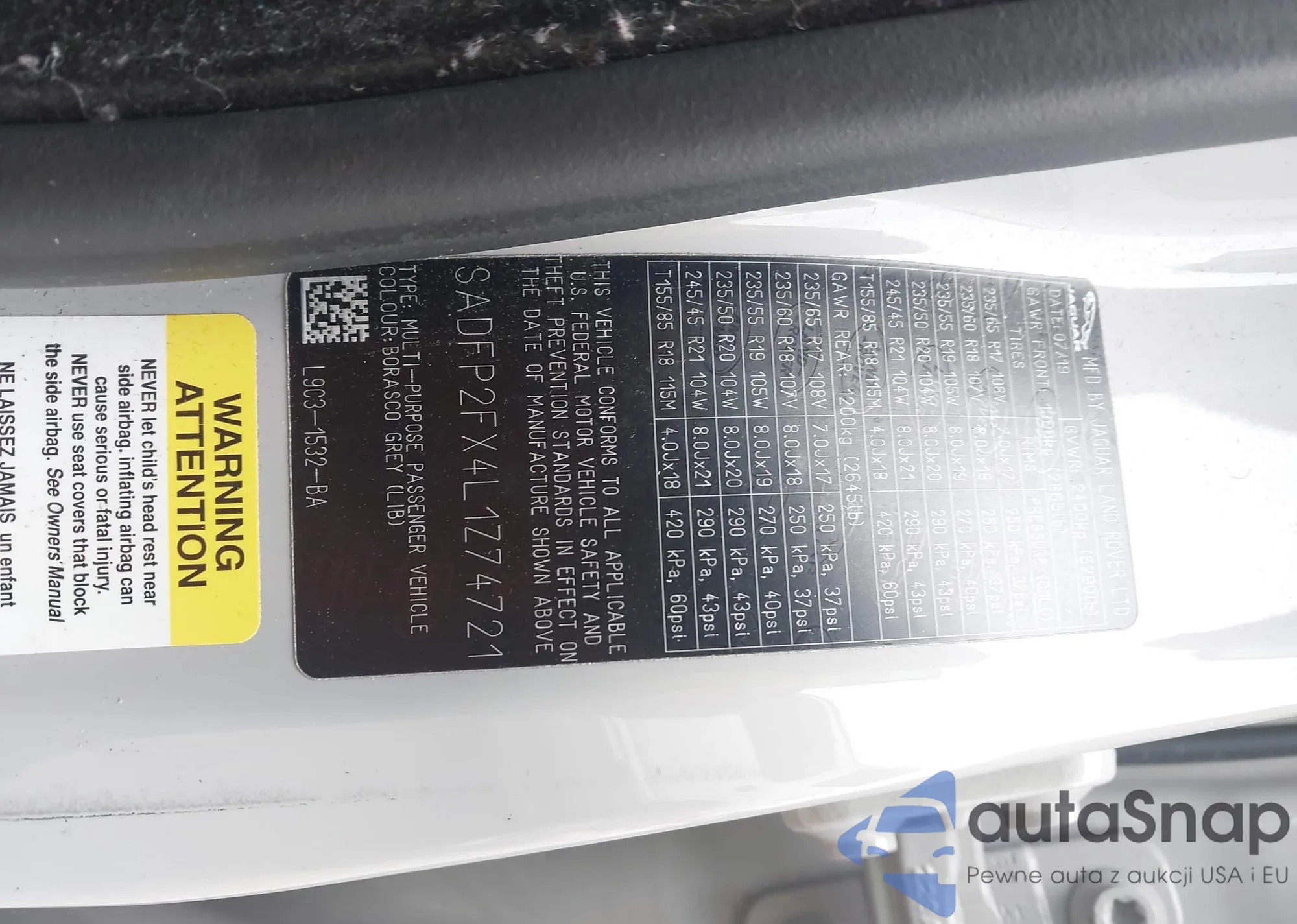 LOT: 43968631 VIN: SADFP2FX4L1Z74721