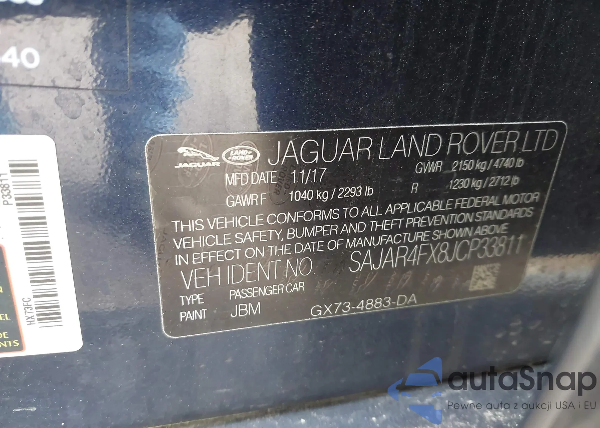• VIN SAJAR4FX8JCP33811