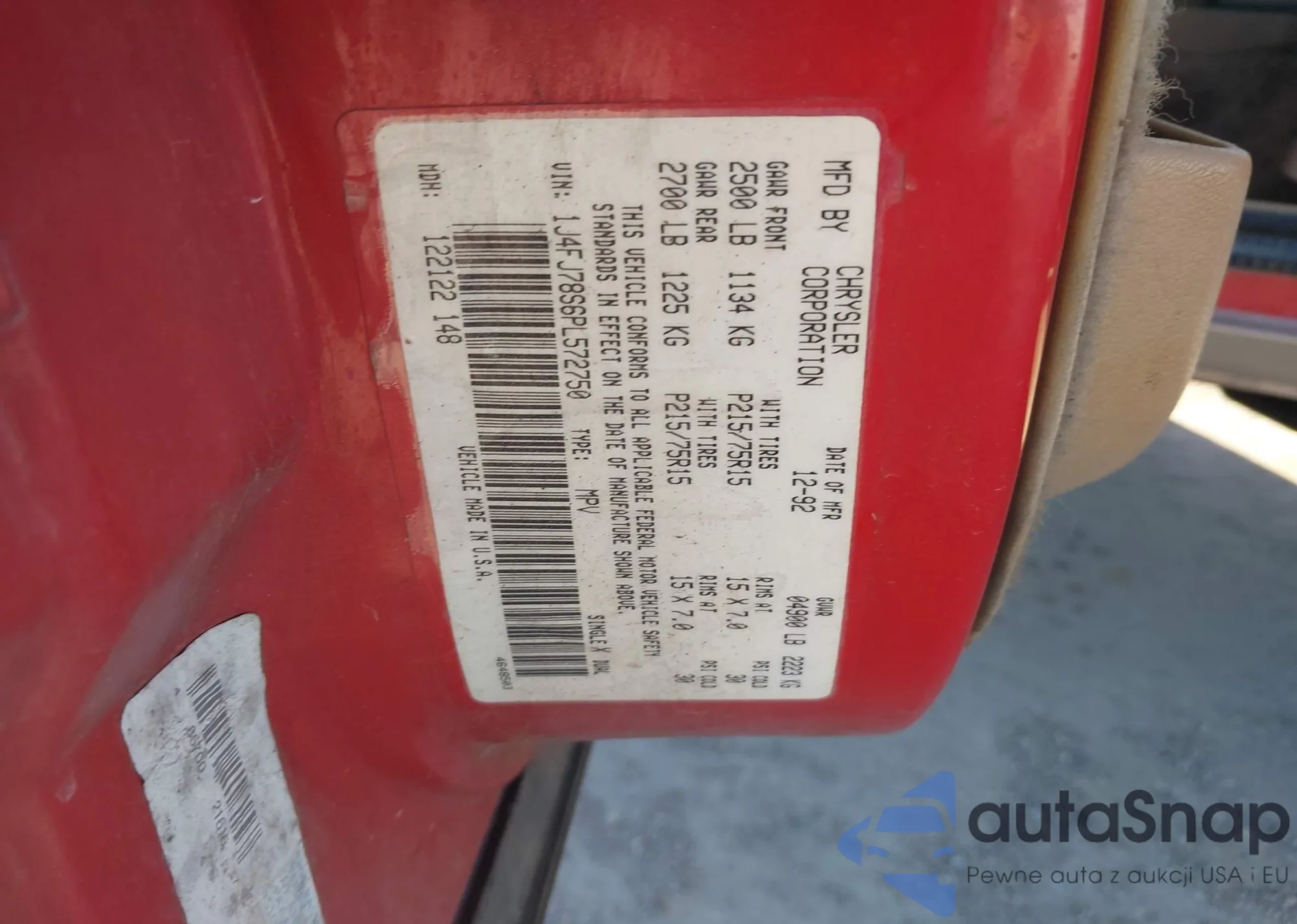 • VIN 1J4FJ78S6PL572750