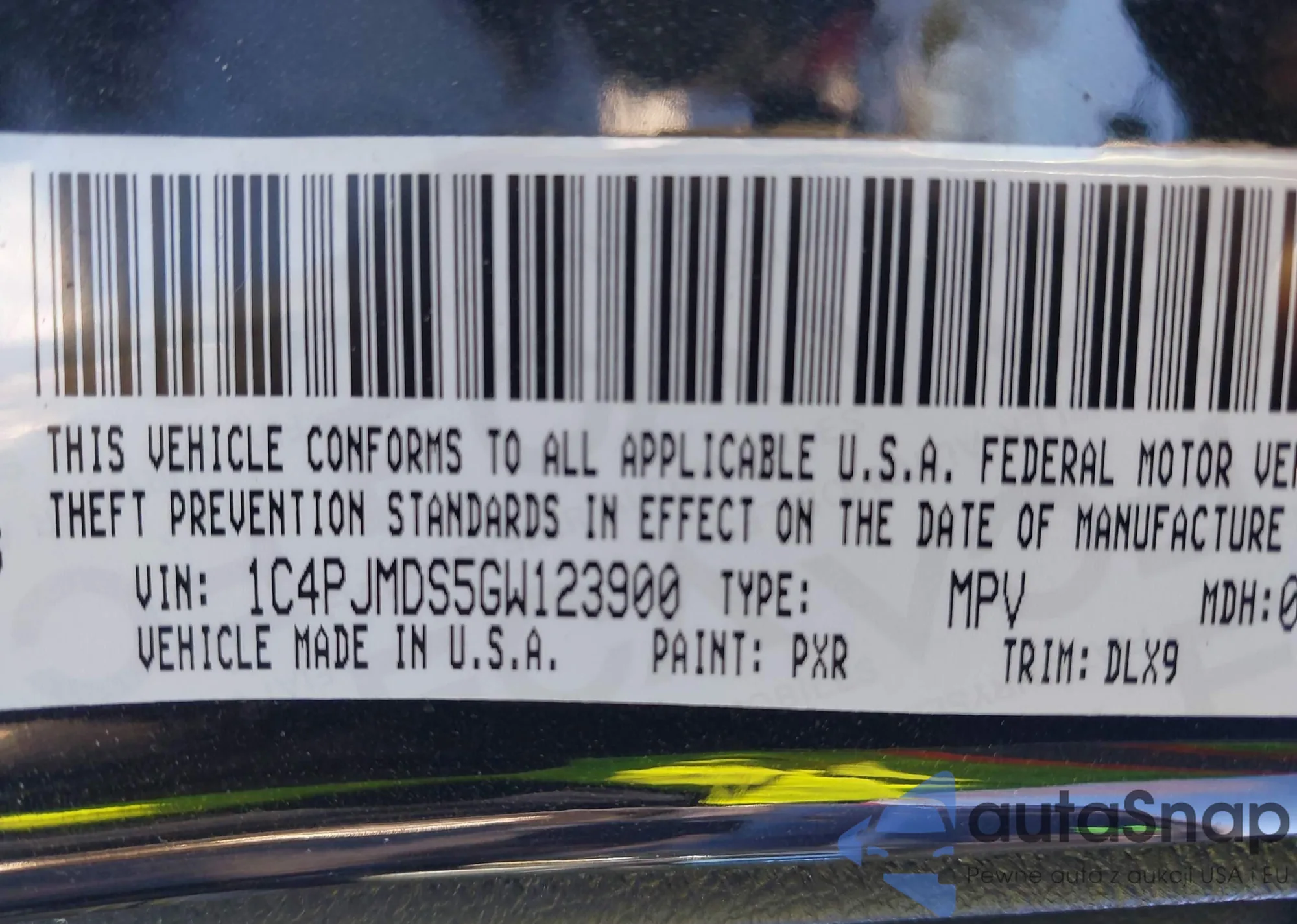 • VIN 1C4PJMDS5GW123900