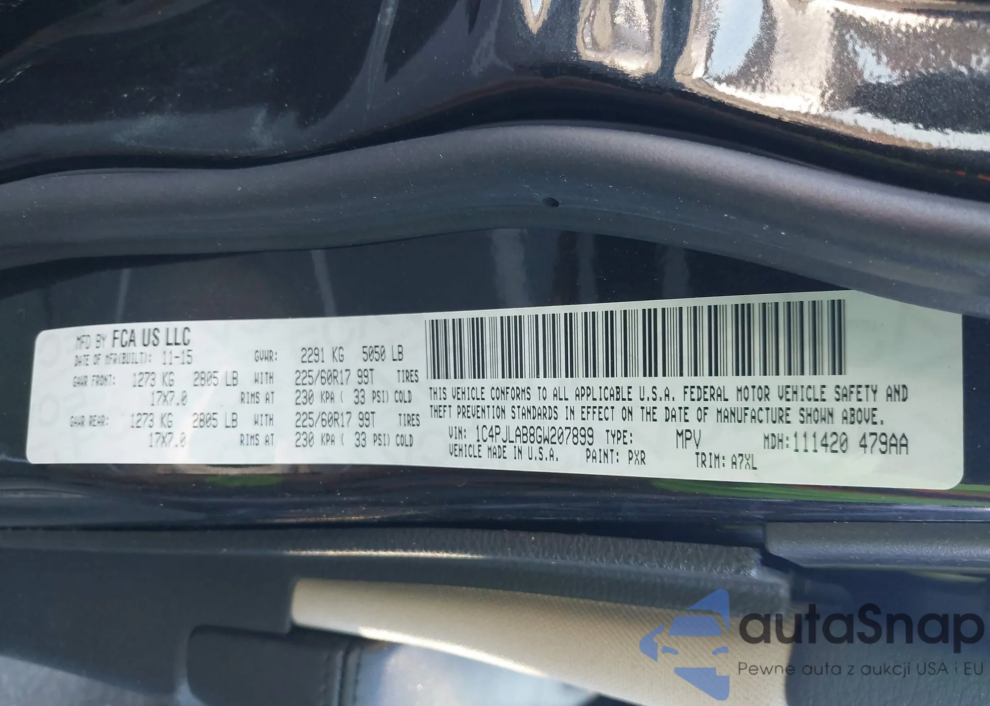 • VIN 1C4PJLAB8GW207899