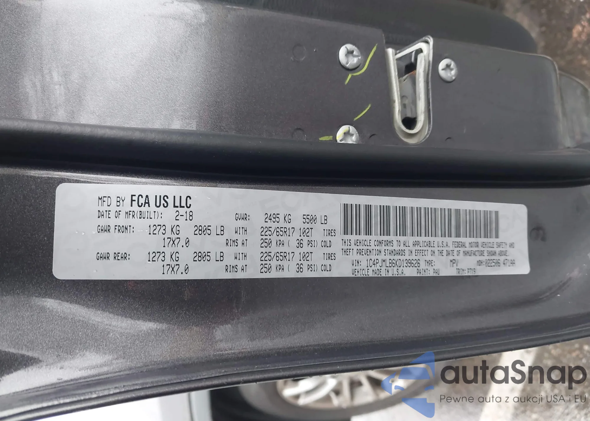 • VIN 1C4PJMLB6KD139626