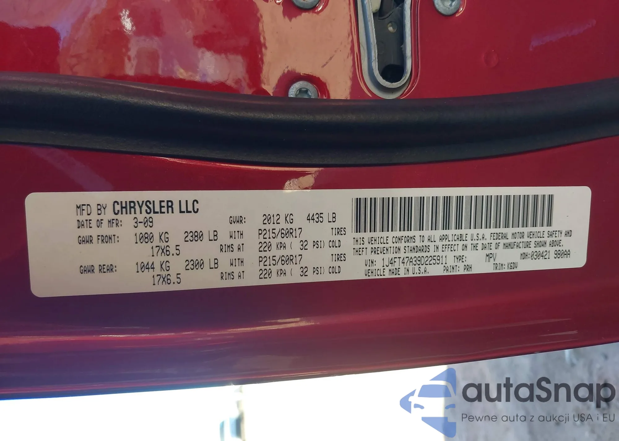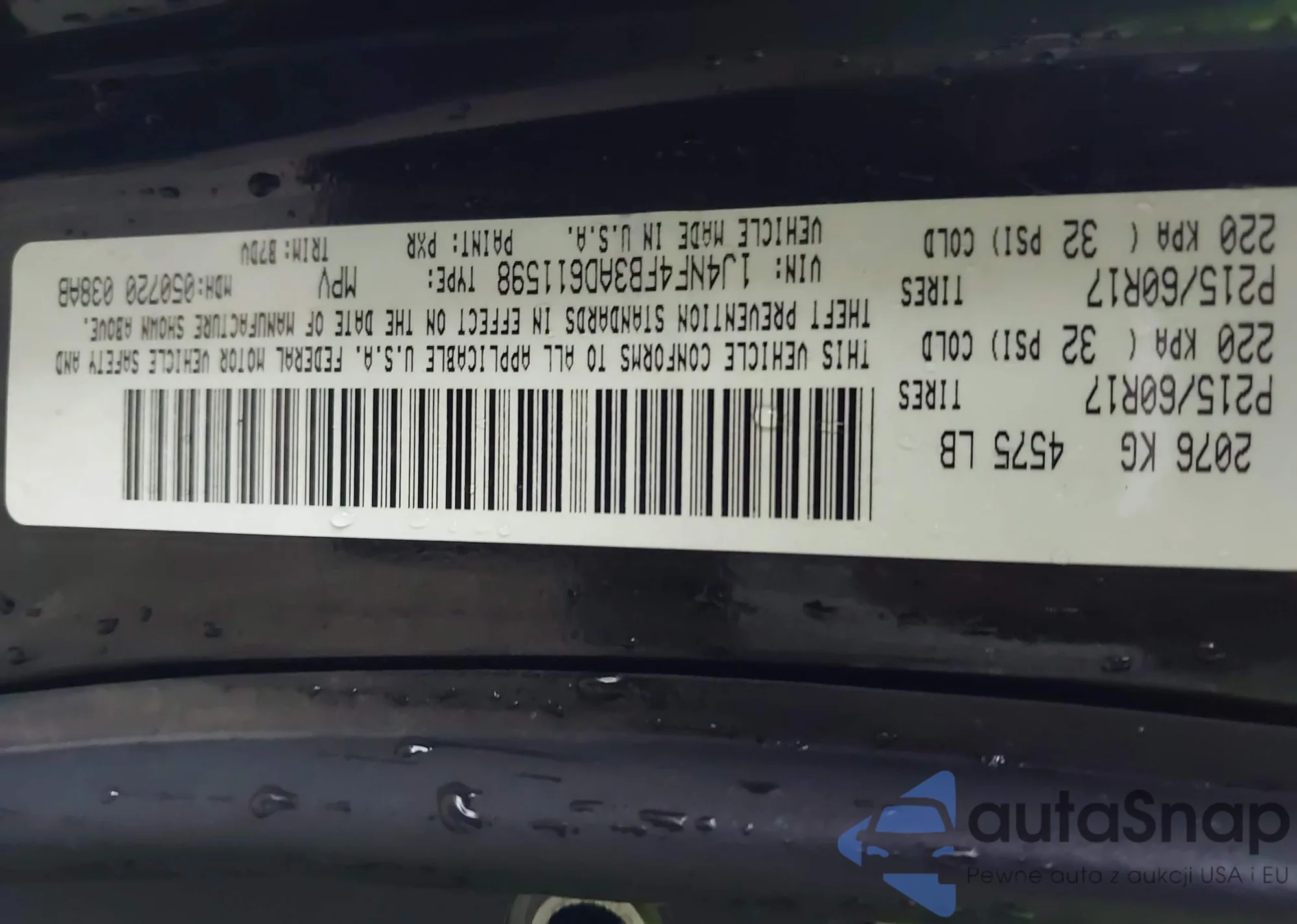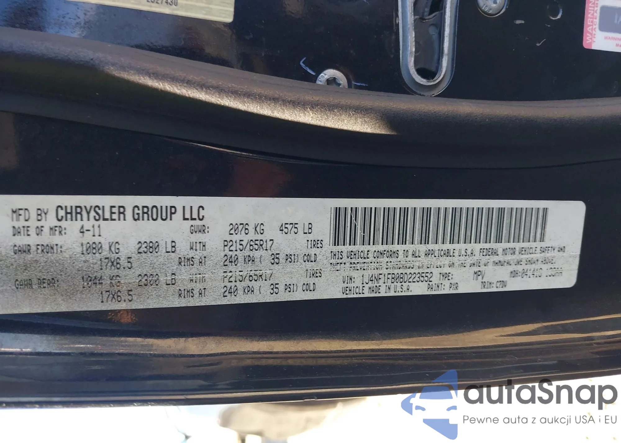 • VIN 1J4NF1FB0BD223552