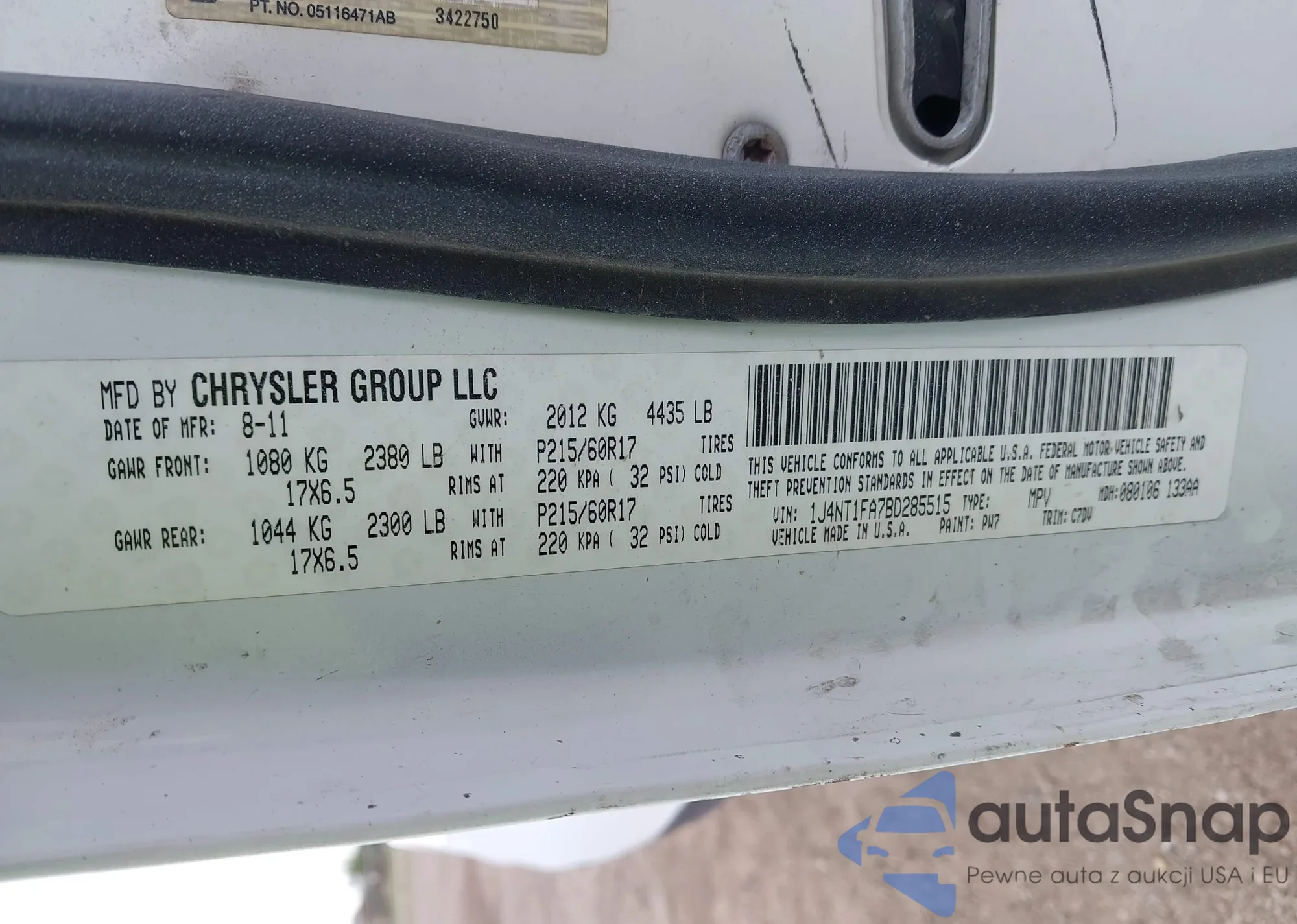 LOT: 44201544 VIN: 1J4NT1FA7BD285515
