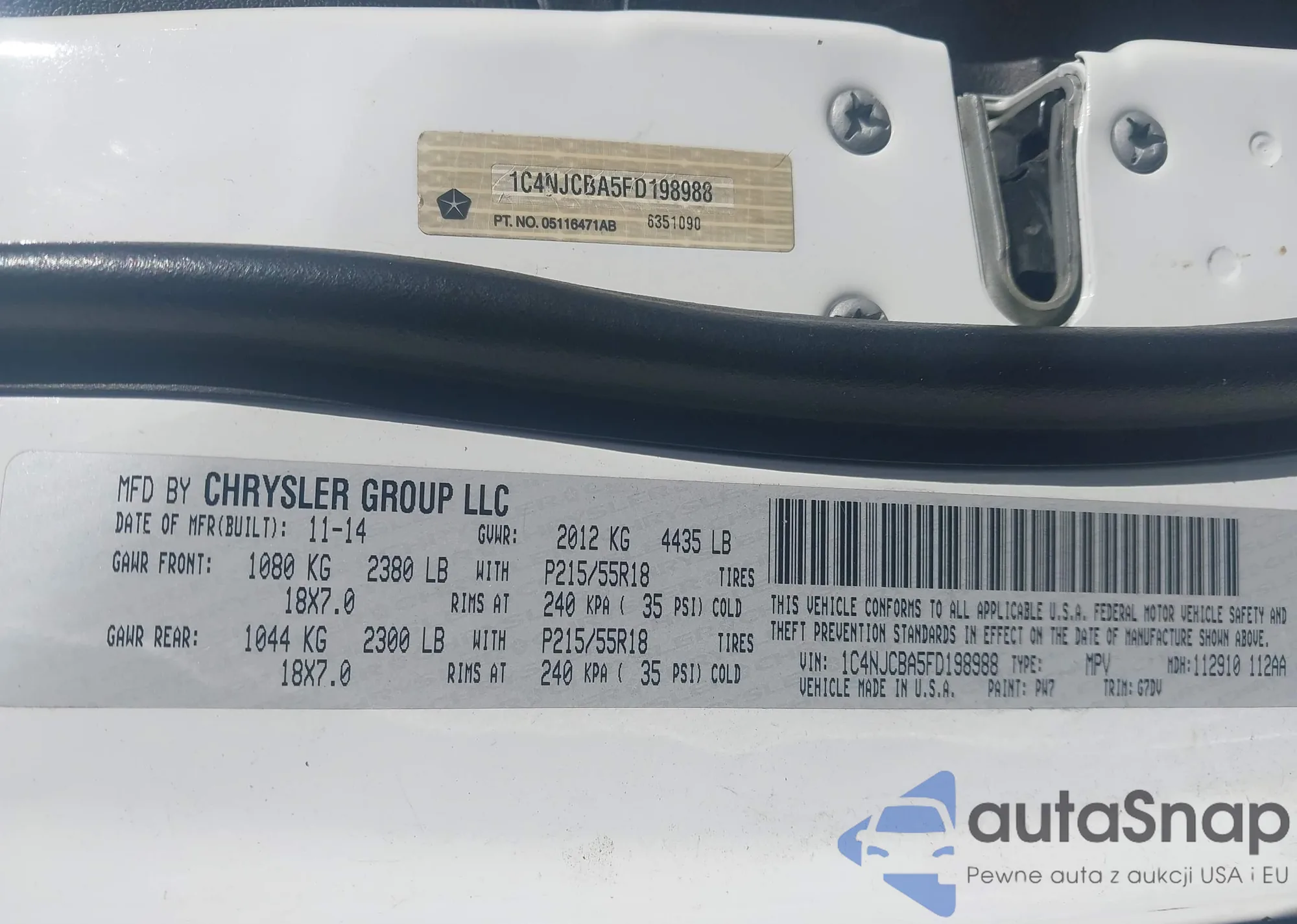 LOT: 43998218 VIN: 1C4NJCBA5FD198988