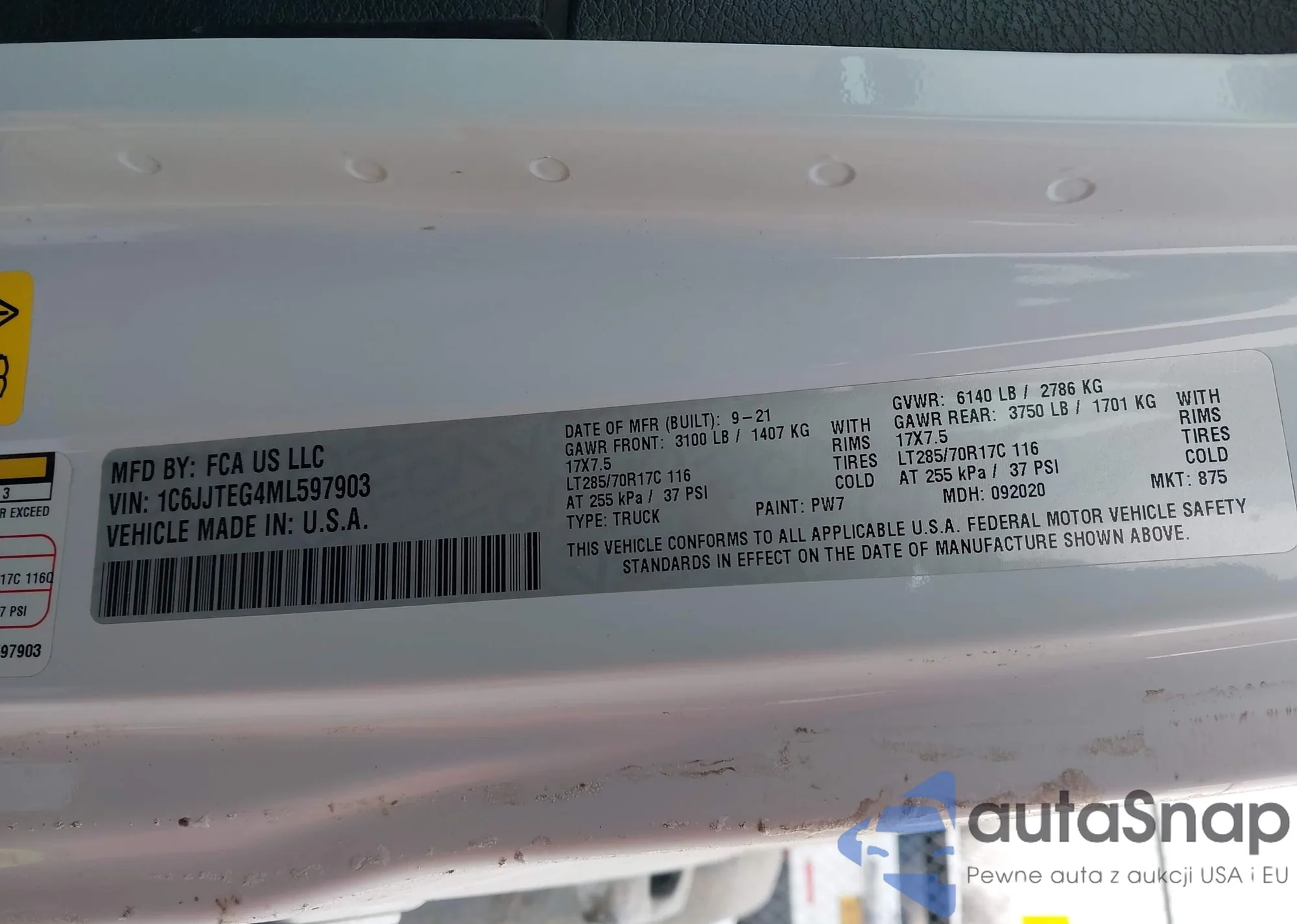 • VIN 1C6JJTEG4ML597903