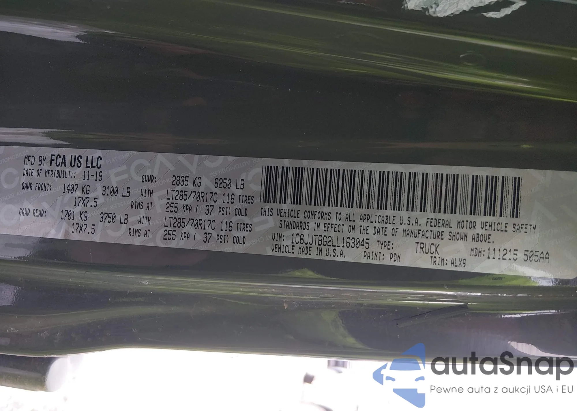 • VIN 1C6JJTBG2LL163045