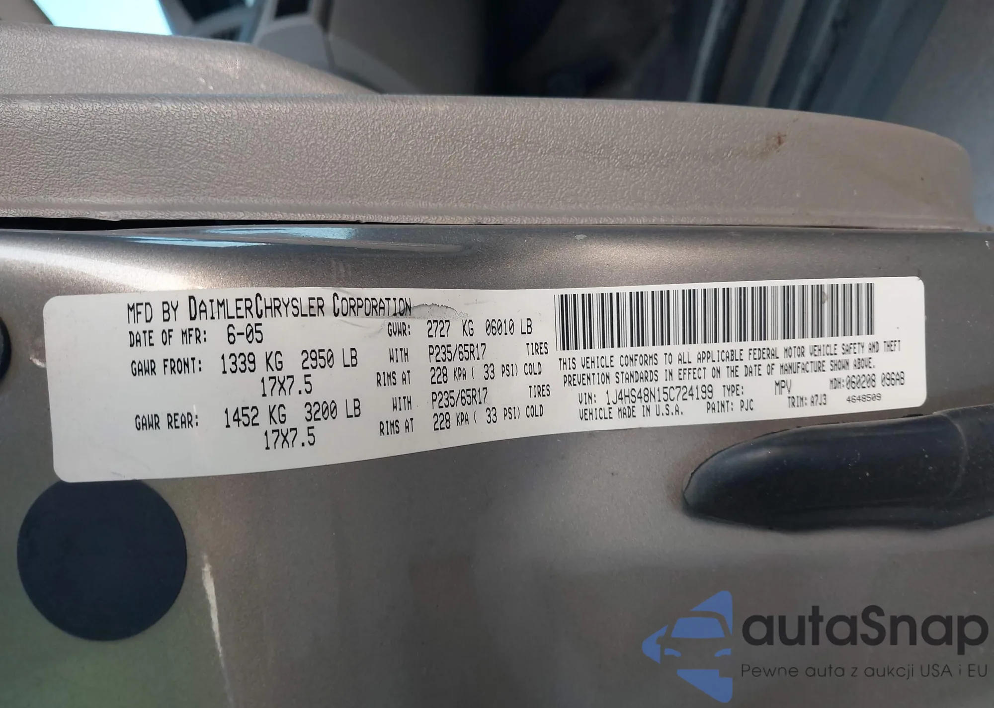 LOT: 43699363 VIN: 1J4HS48N15C724199