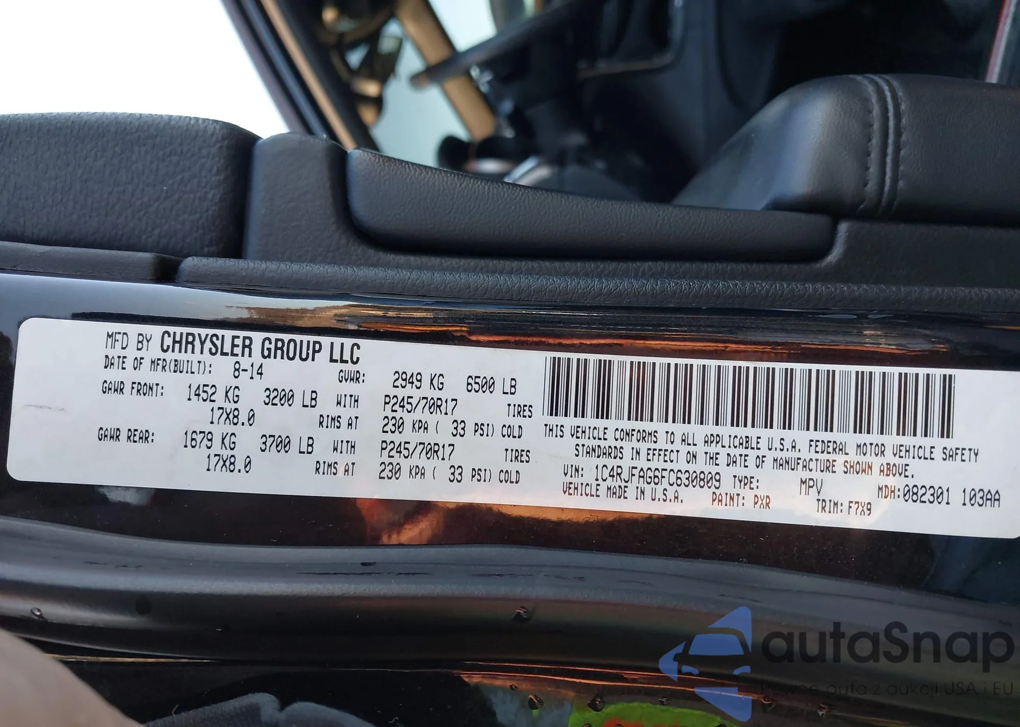 • VIN 1C4RJFAG6FC630809