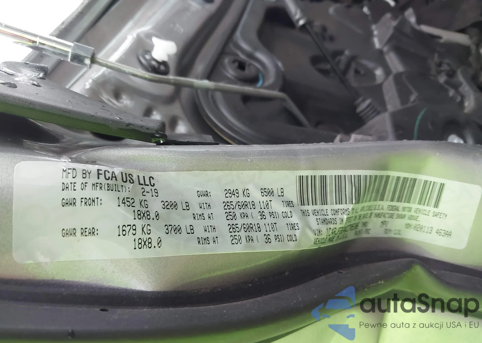 • VIN 1C4RJFAG0JC438732