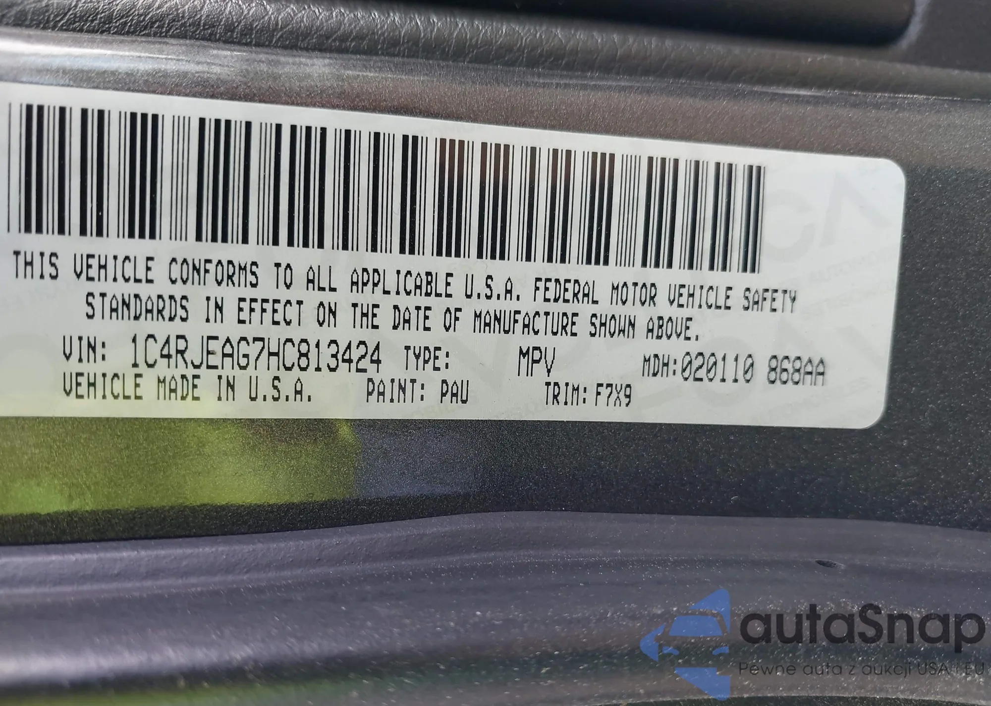 • VIN 1C4RJEAG7HC813424