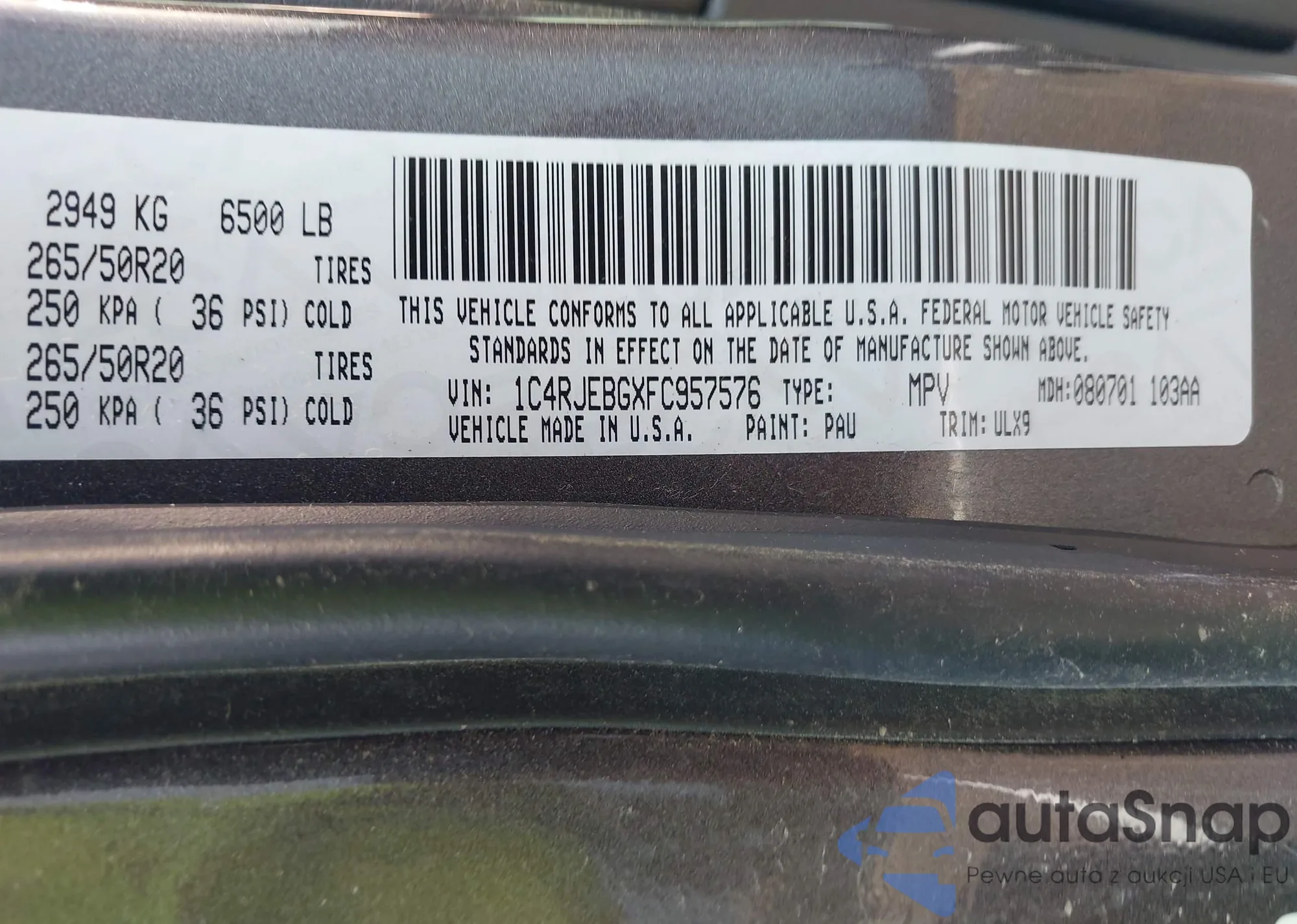 • VIN 1C4RJEBGXFC957576
