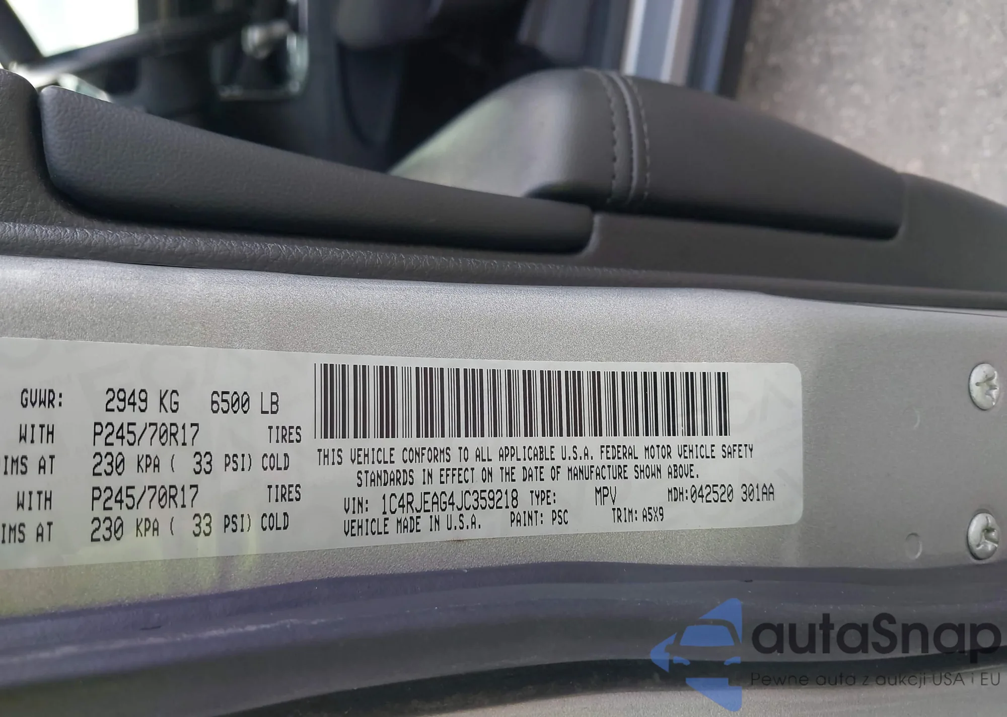 • VIN 1C4RJEAG4JC359218