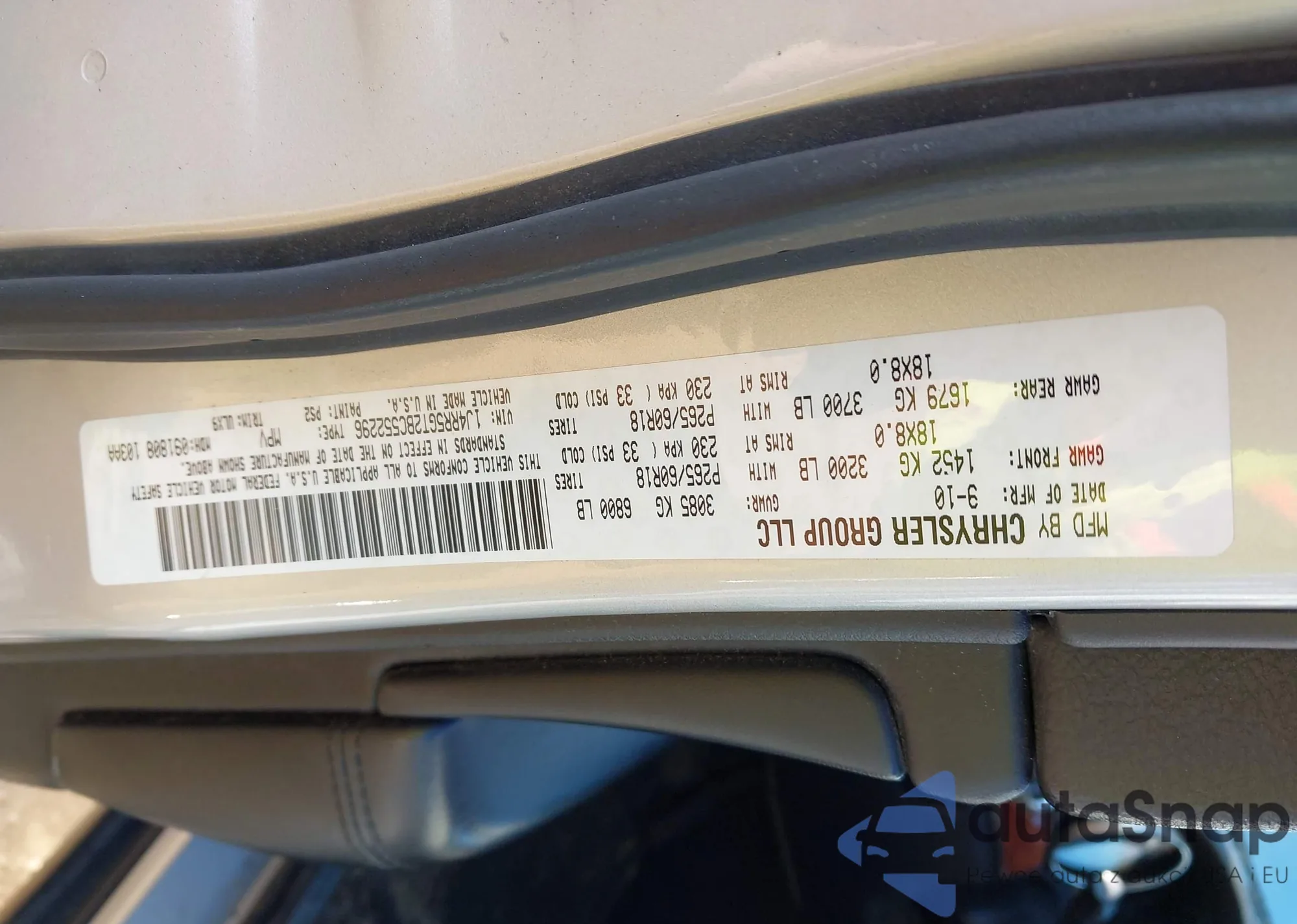 • VIN 1J4RR5GT2BC552296