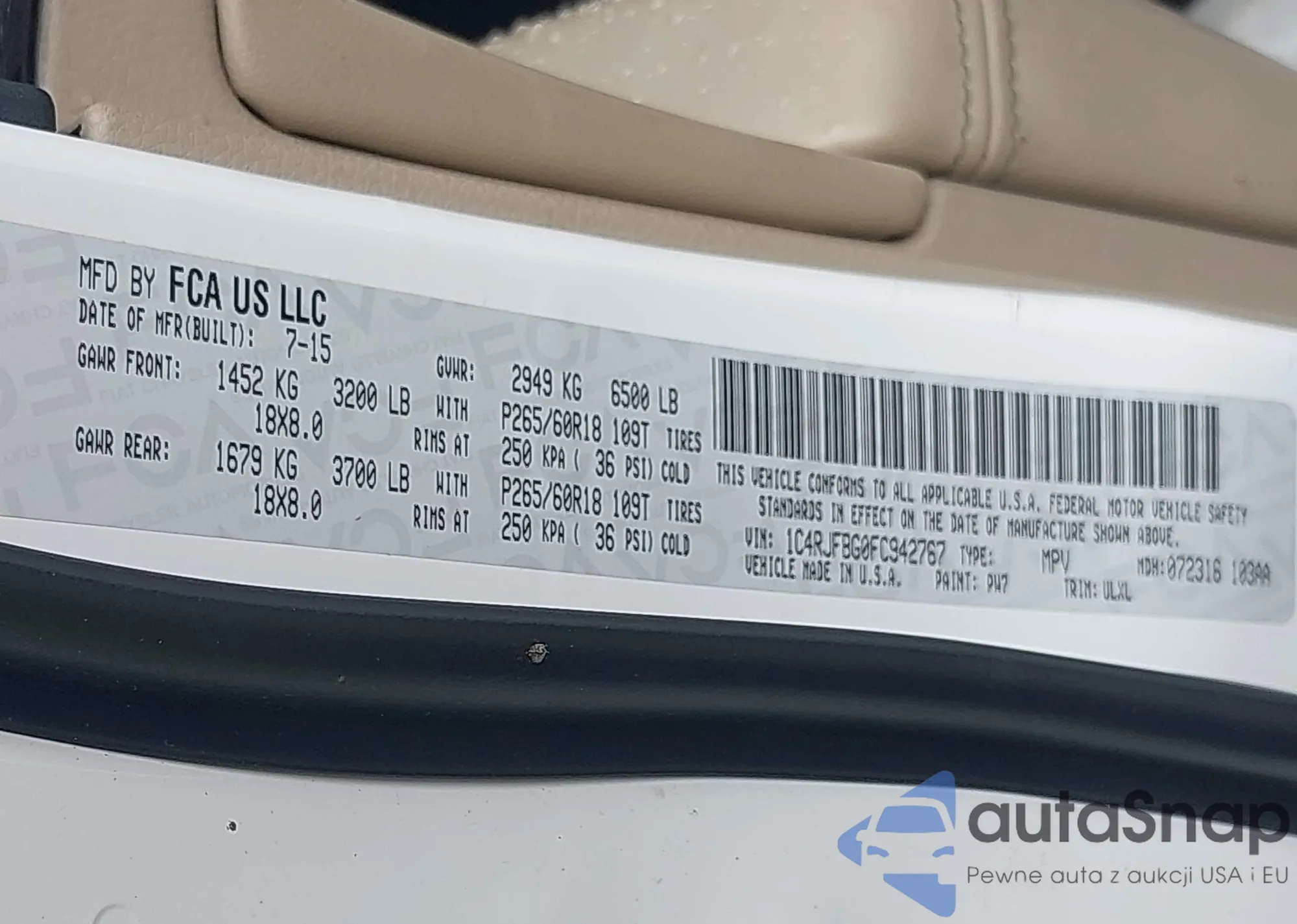 • VIN 1C4RJFAG0FC924349