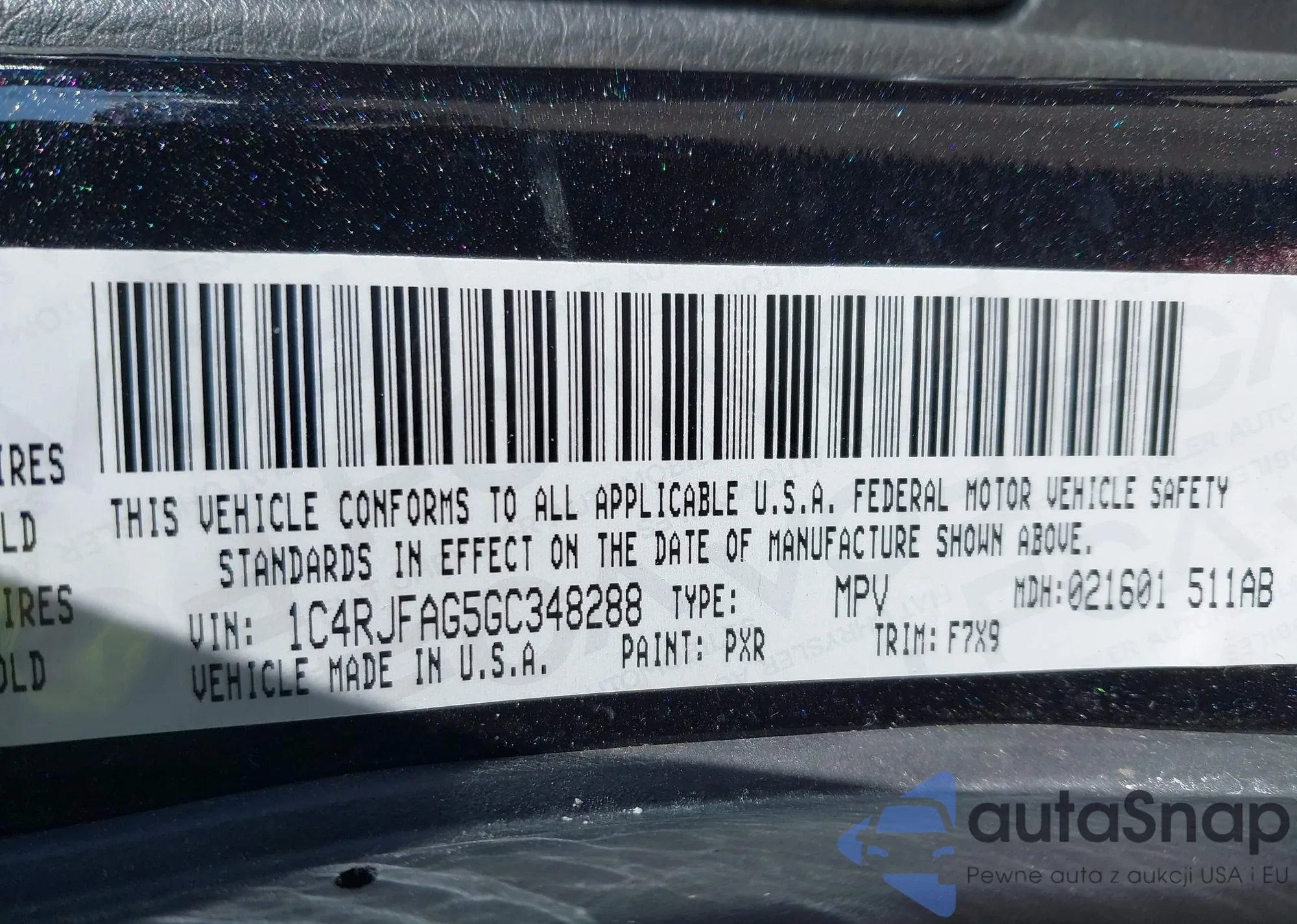 • VIN 1C4RJFAG5GC348288