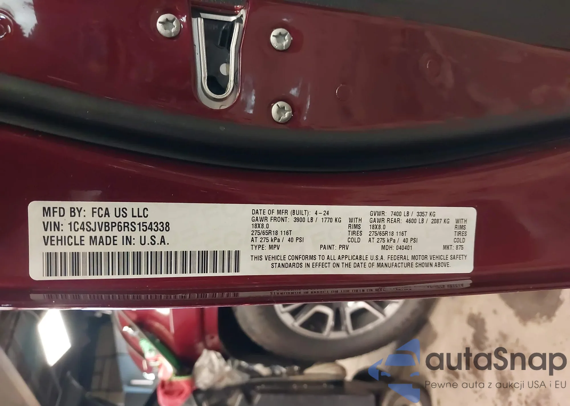 • VIN 1C4SJVBP6RS154338