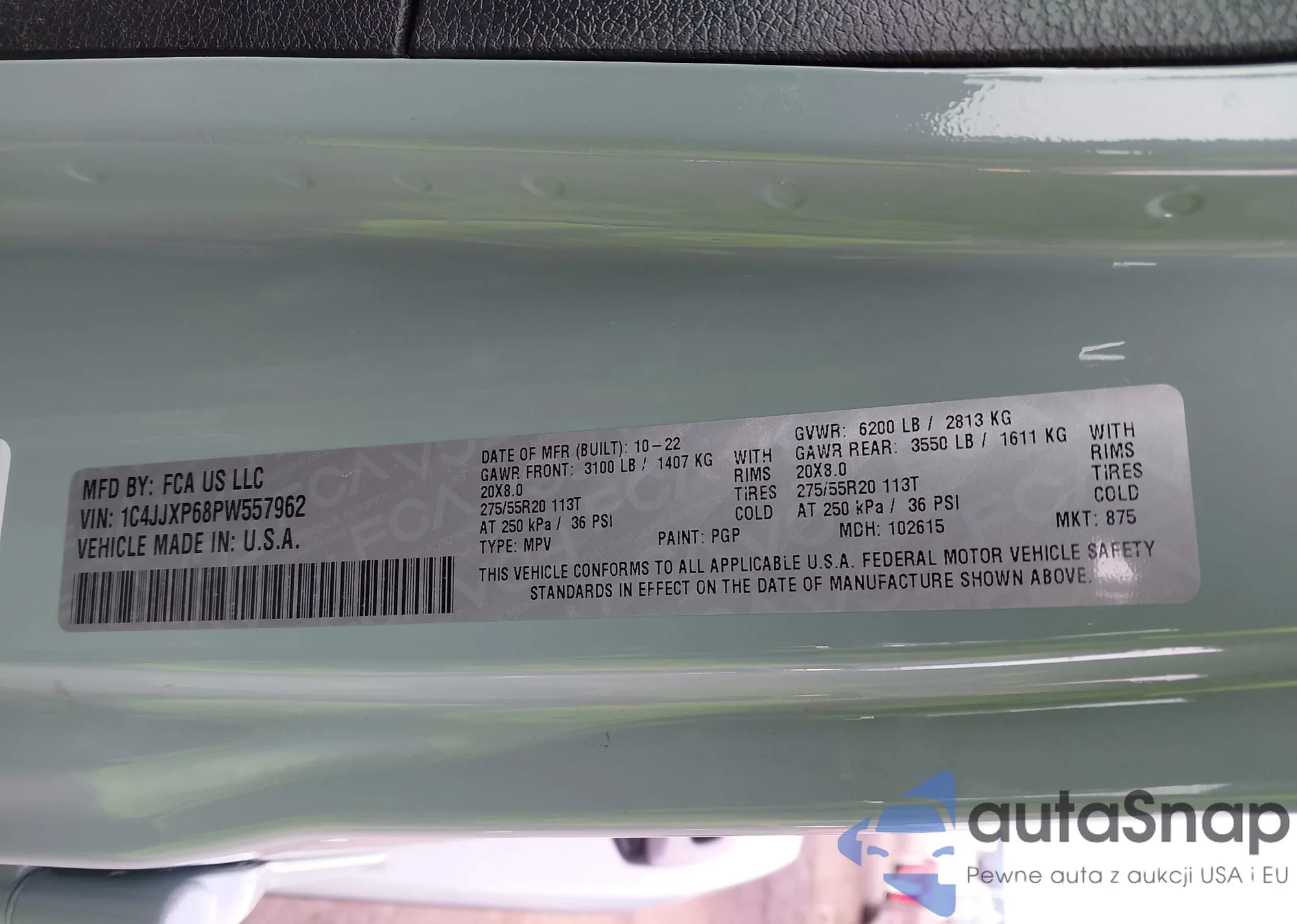 • VIN 1C4JJXP68PW557962