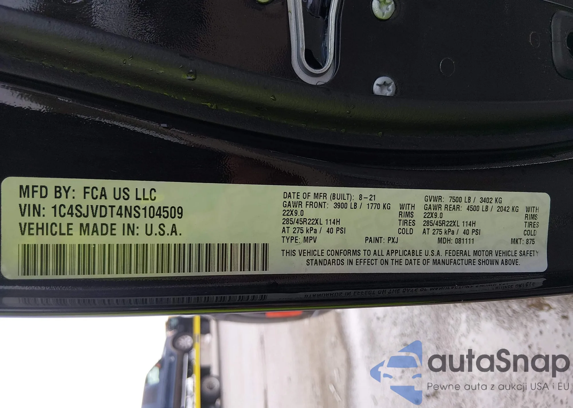 • VIN 1C4SJVDT4NS104509