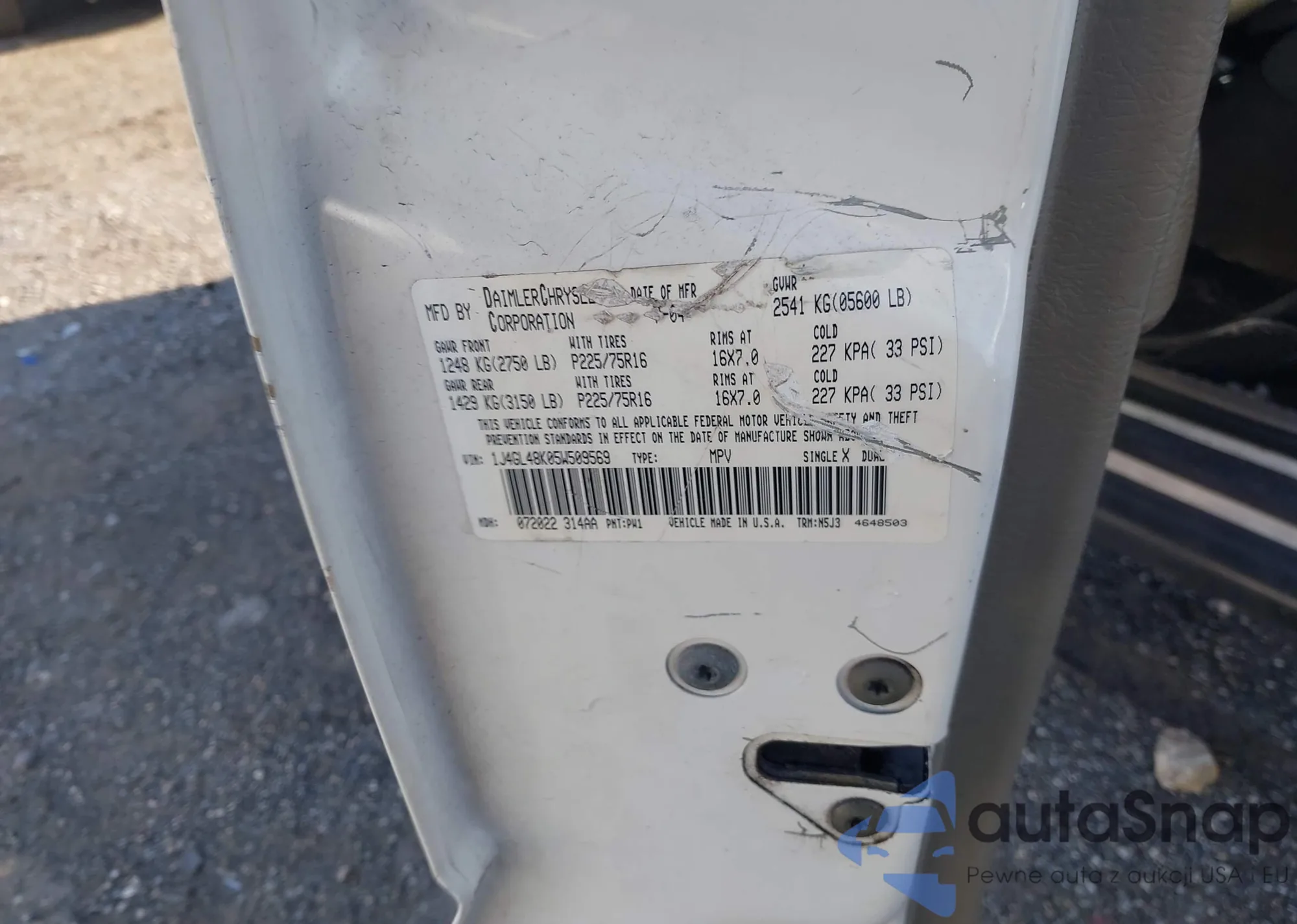 LOT: 44178628 VIN: 1J4GL48K05W509569