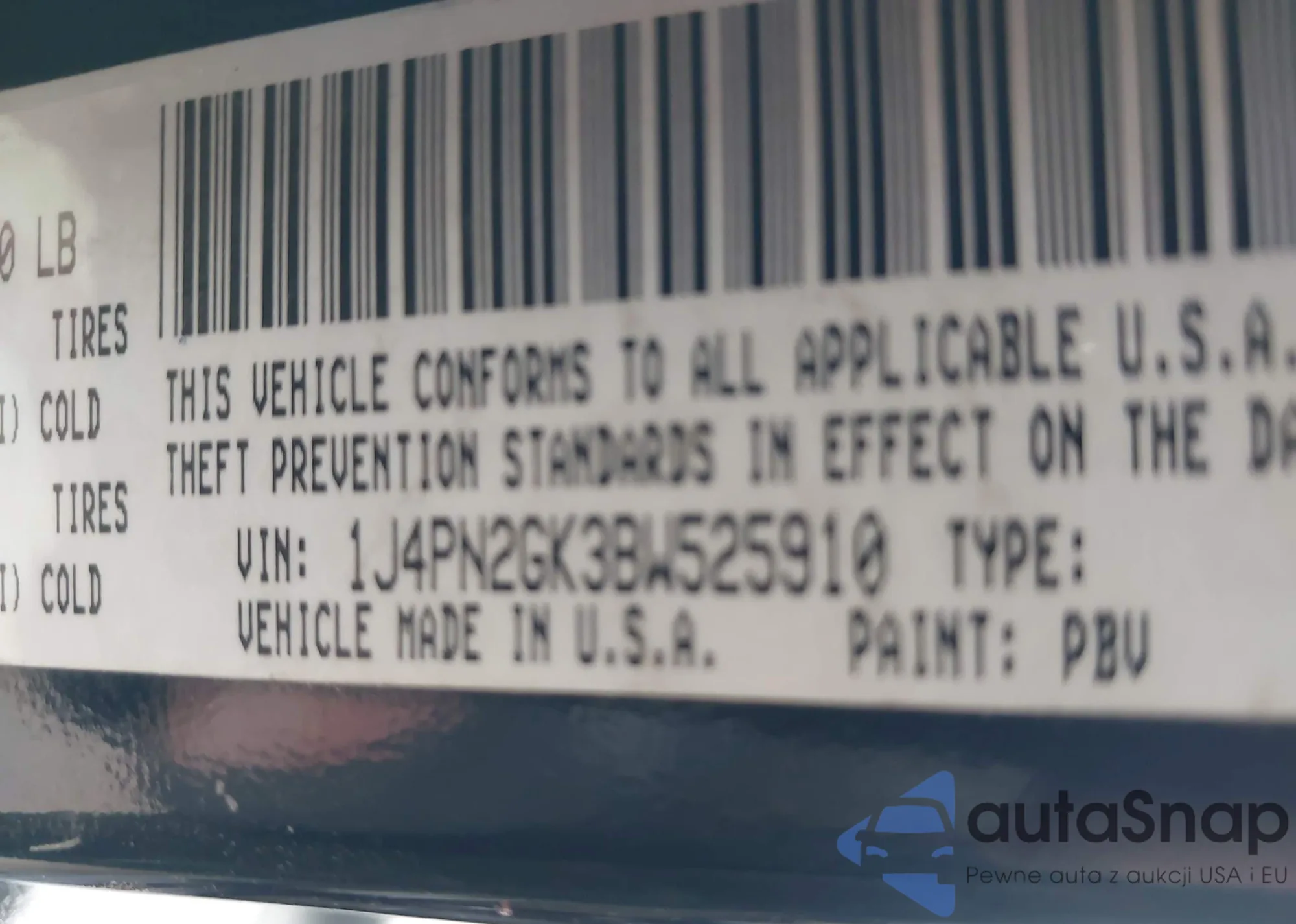 • VIN 1J4PN2GK3BW525910