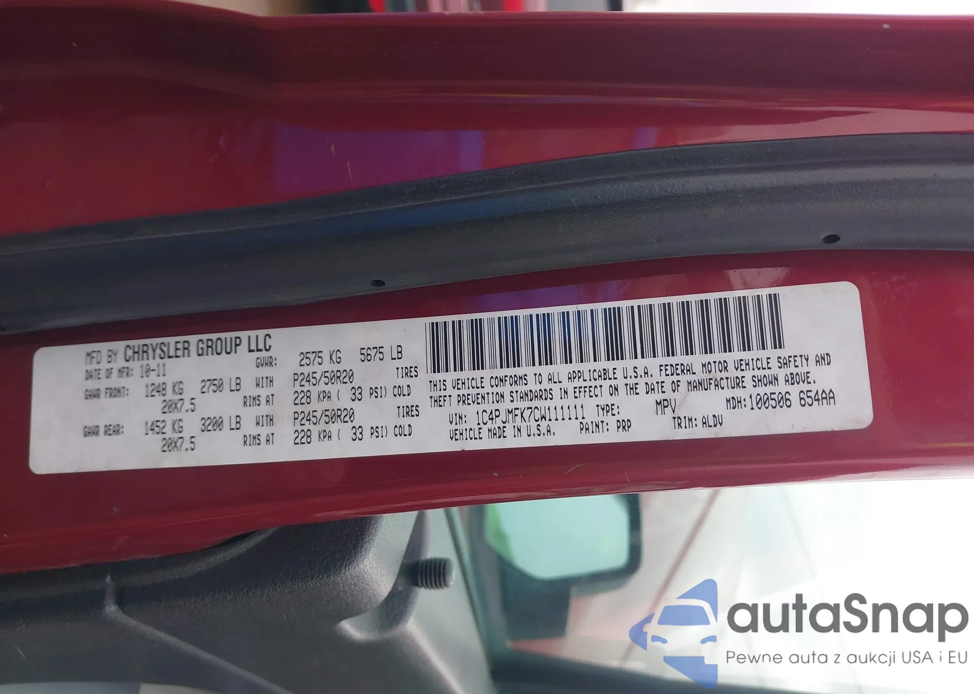 • VIN 1C4PJMFK7CW111111