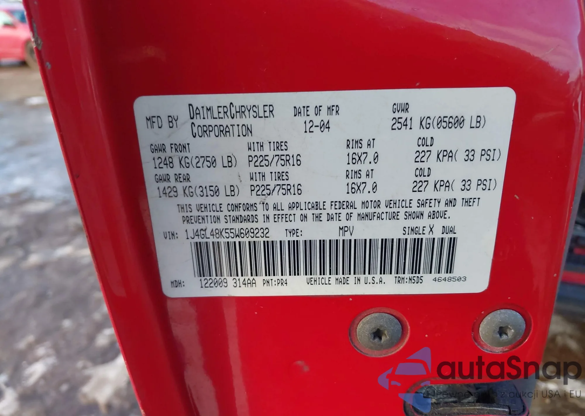 • VIN 1J4GL48K55W609232