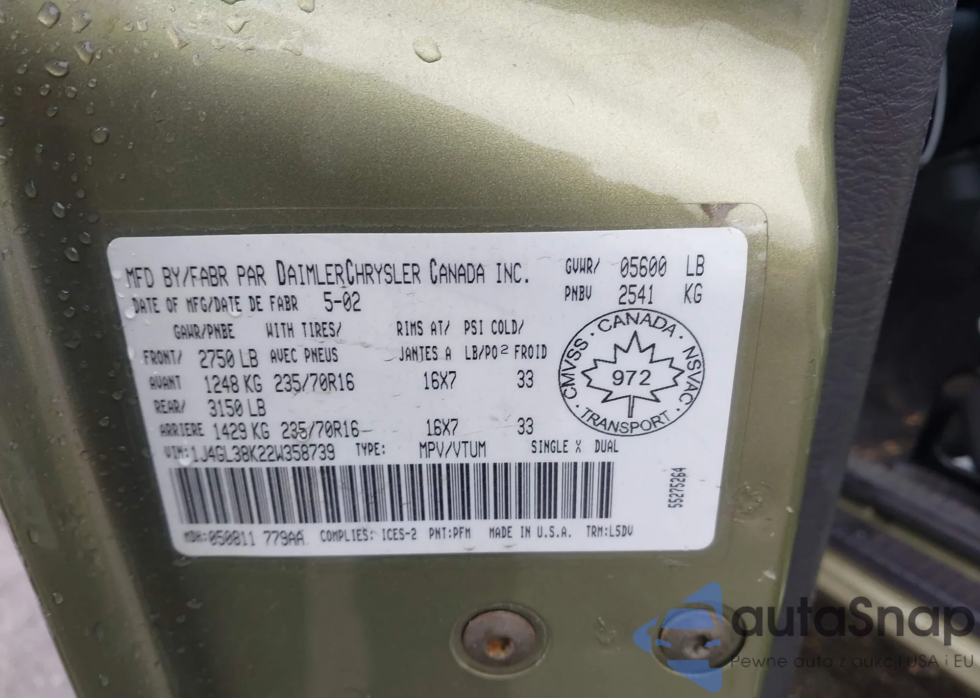 LOT: 44364294 VIN: 1J4GL38K22W358739