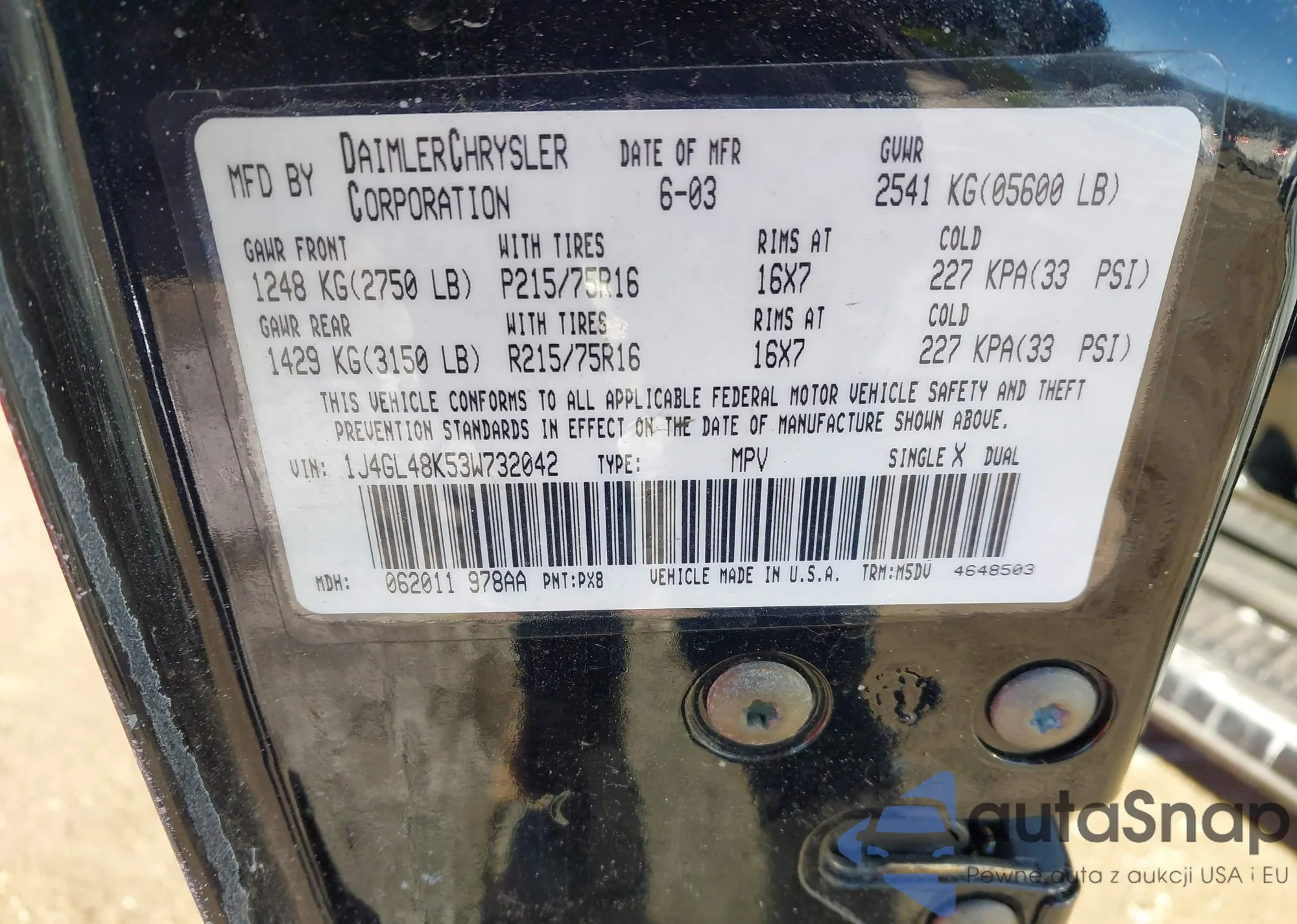 • VIN 1J4GL48K53W732042