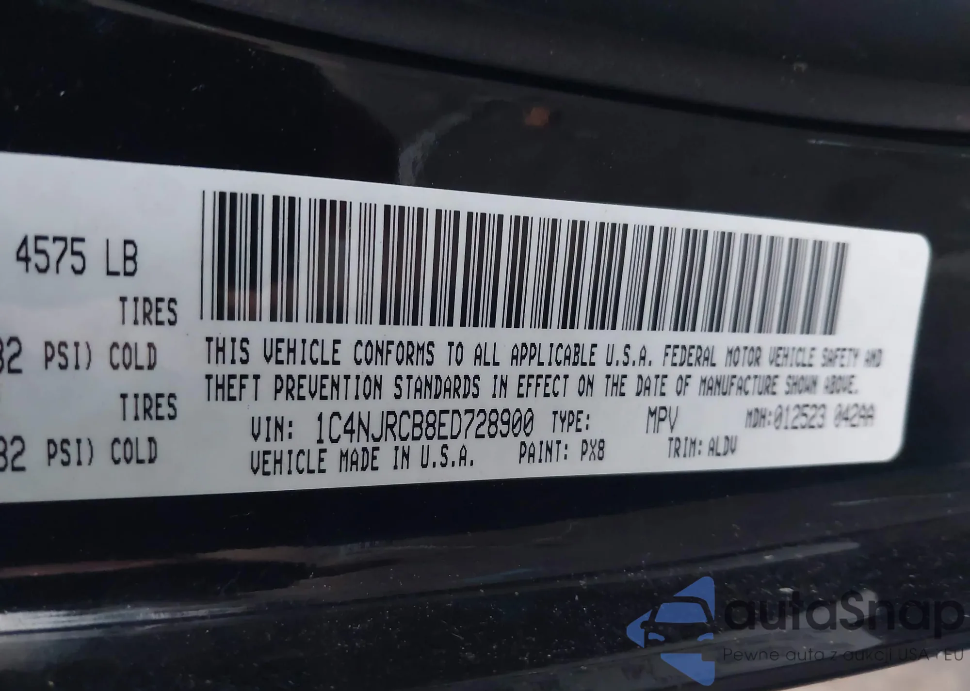 LOT: 43960630 VIN: 1C4NJRCB8ED728900