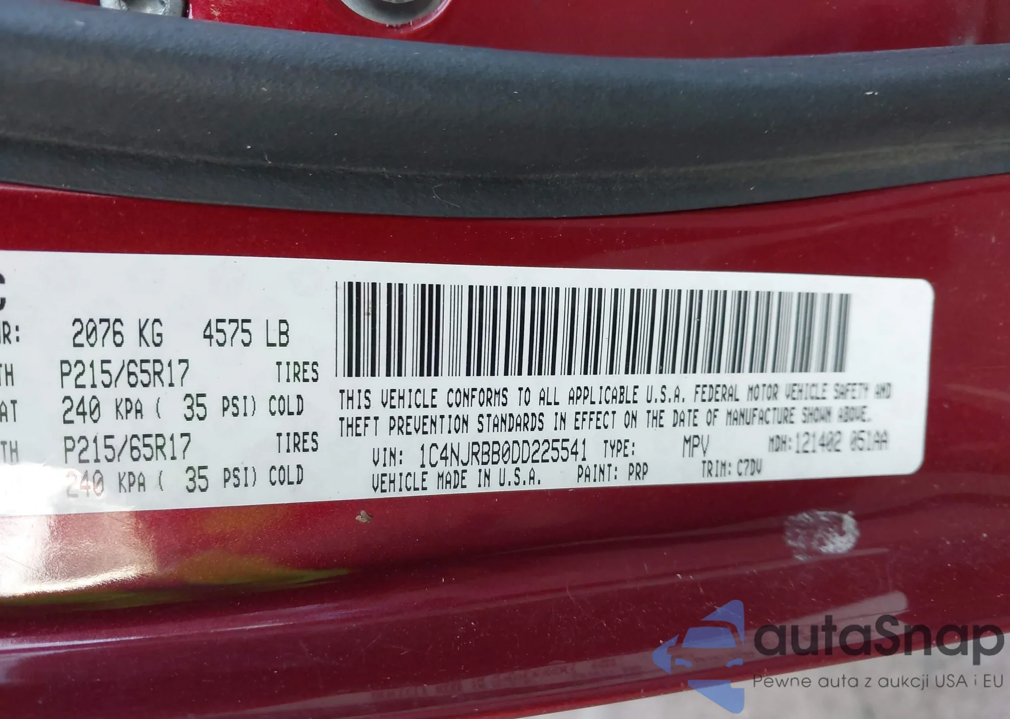 • VIN 1C4NJRBB0DD225541
