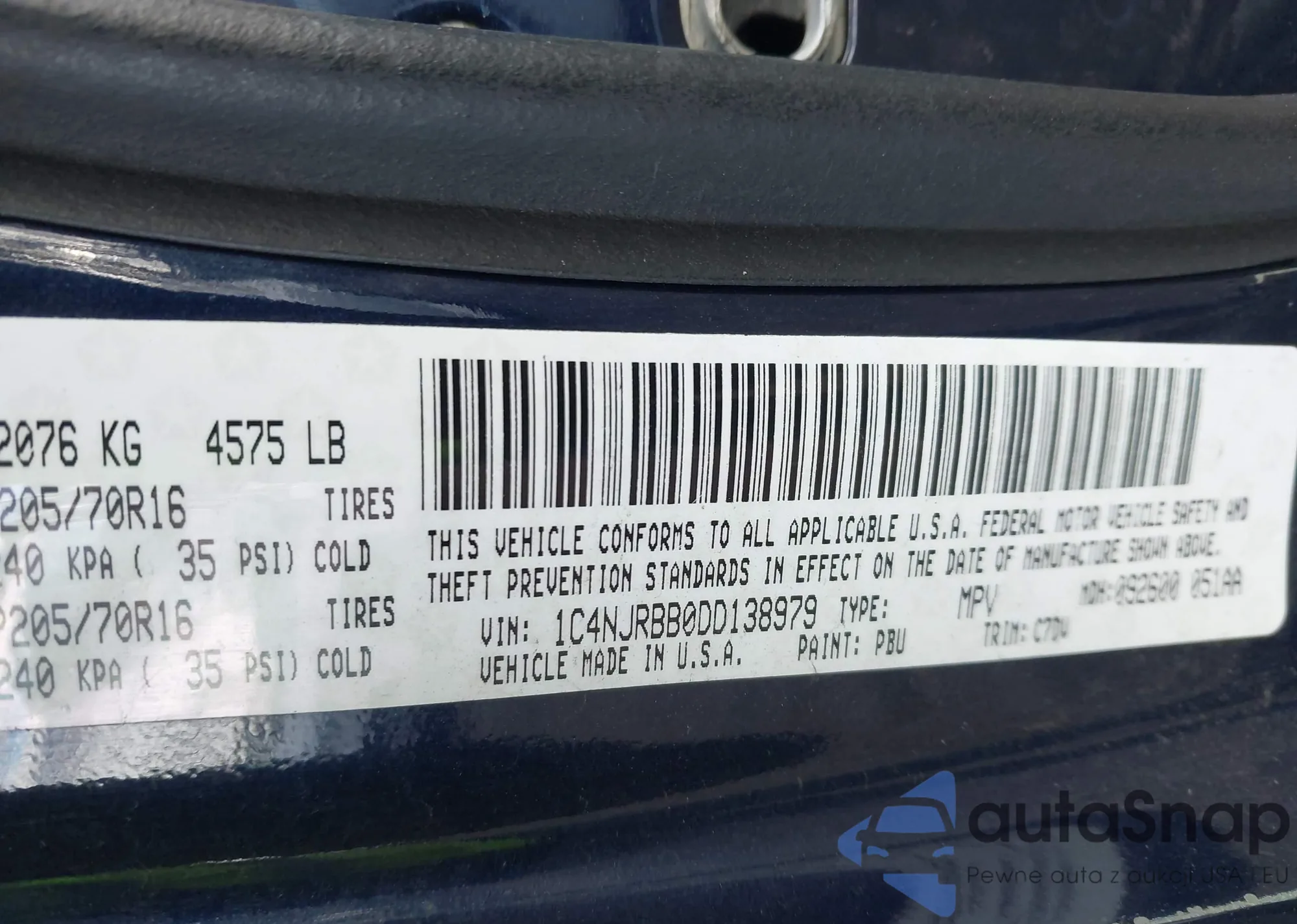 LOT: 44125946 VIN: 1C4NJRBB0DD138979