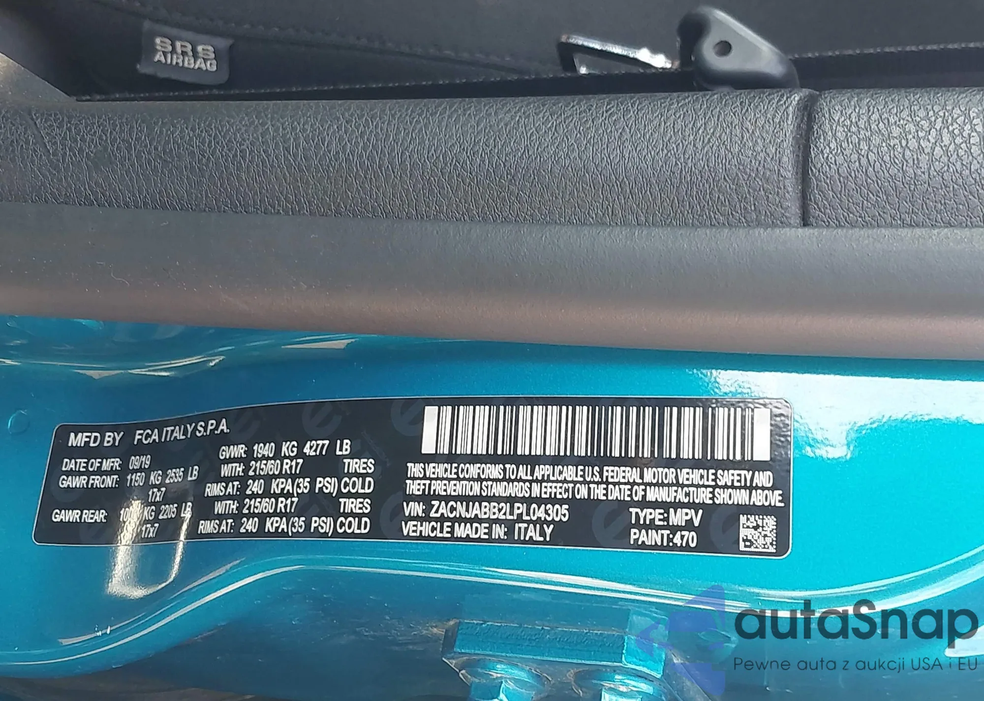 LOT: 43318646 VIN: ZACNJABB2LPL04305