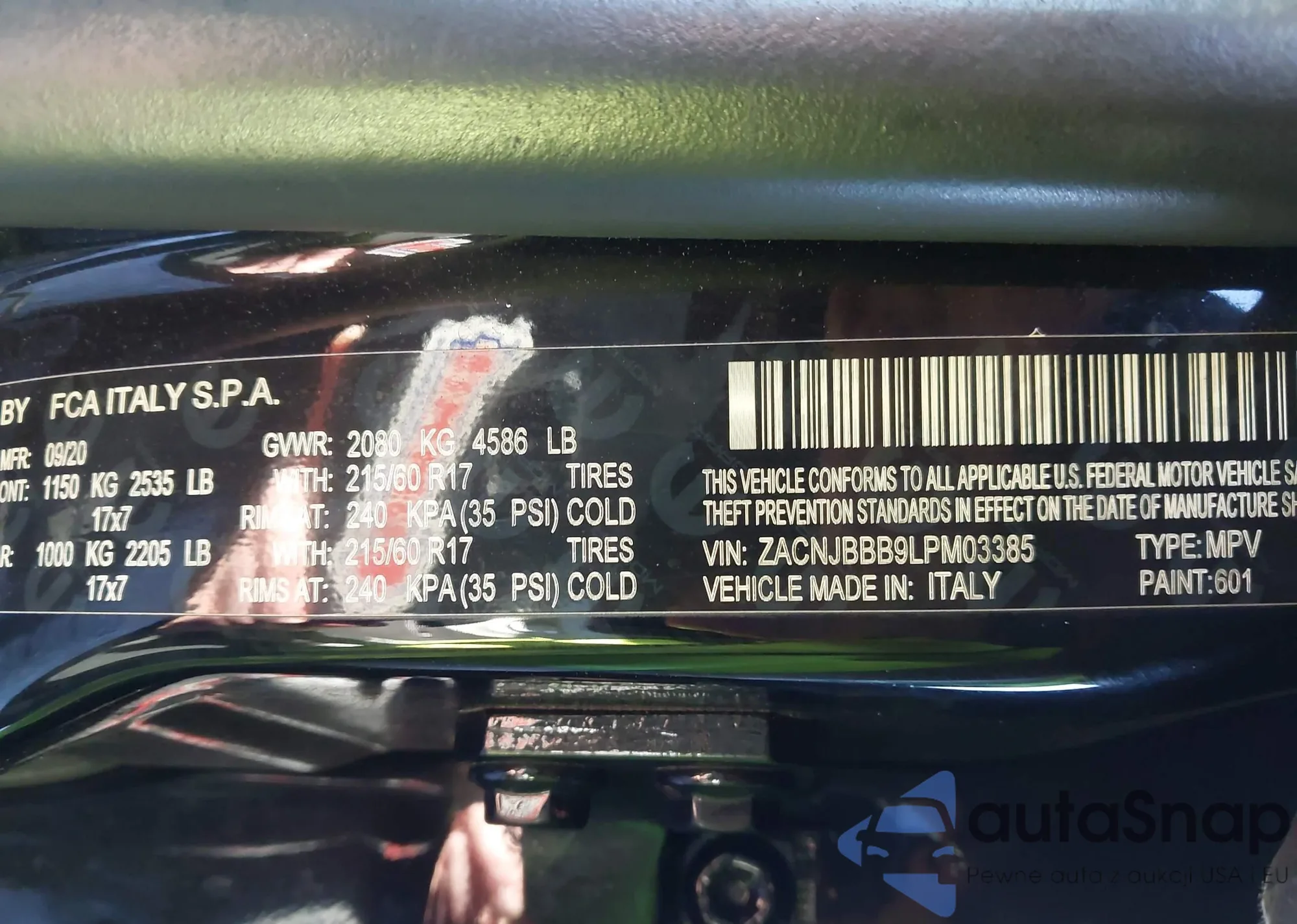 LOT: 43952233 VIN: ZACNJBBB9LPM03385