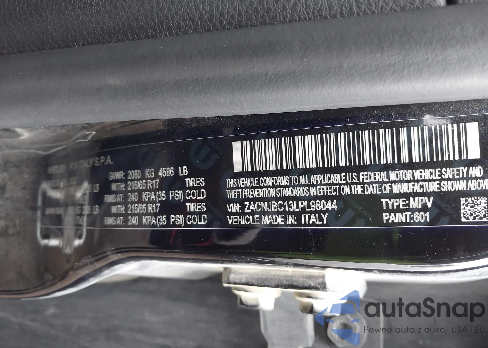 LOT: 43780099 VIN: ZACNJBC13LPL98044