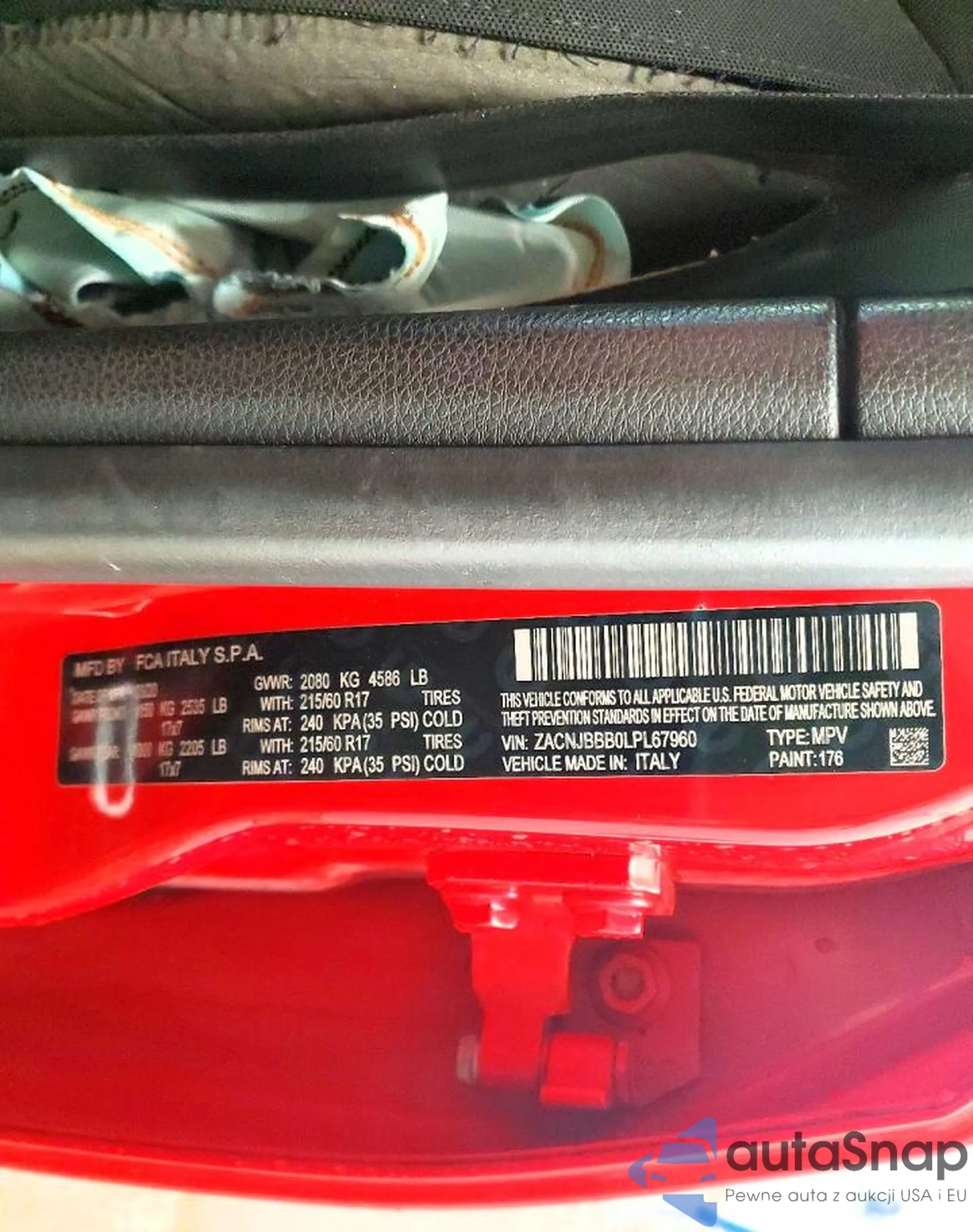 LOT: 76215095 VIN: ZACNJBBB0LPL67960