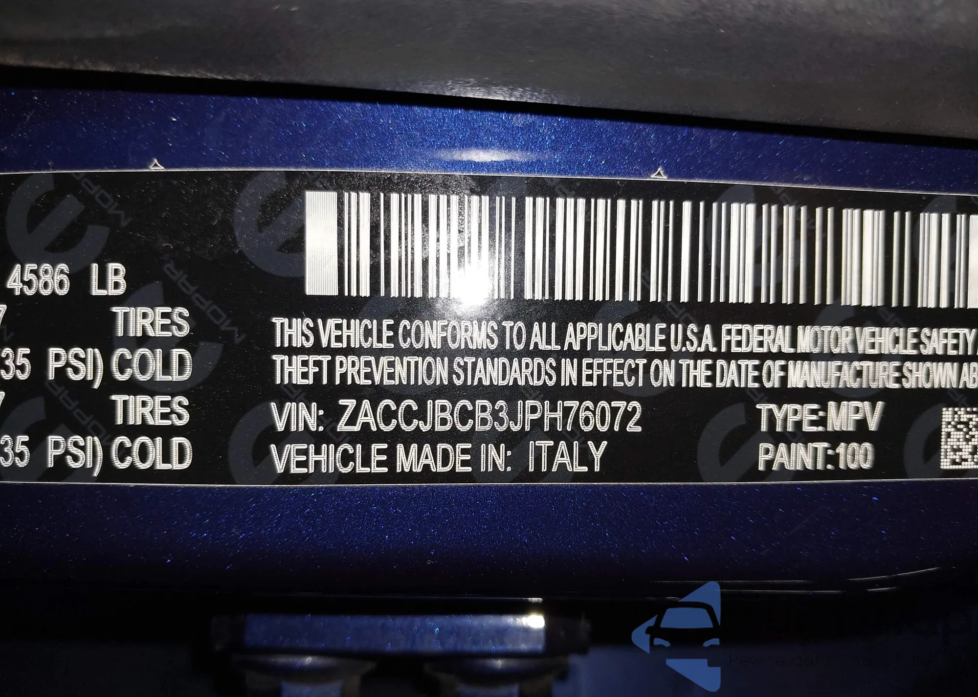 • VIN ZACCJBCB3JPH76072