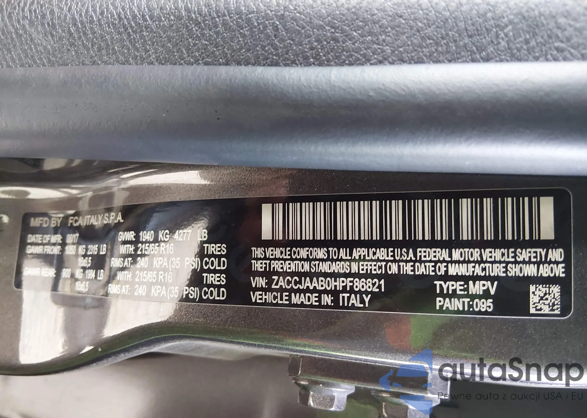 • VIN ZACCJAAB0HPF86821