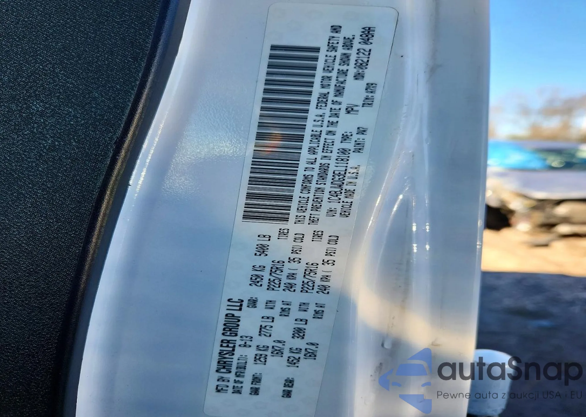 • VIN 1C4BJWEG8CL267081