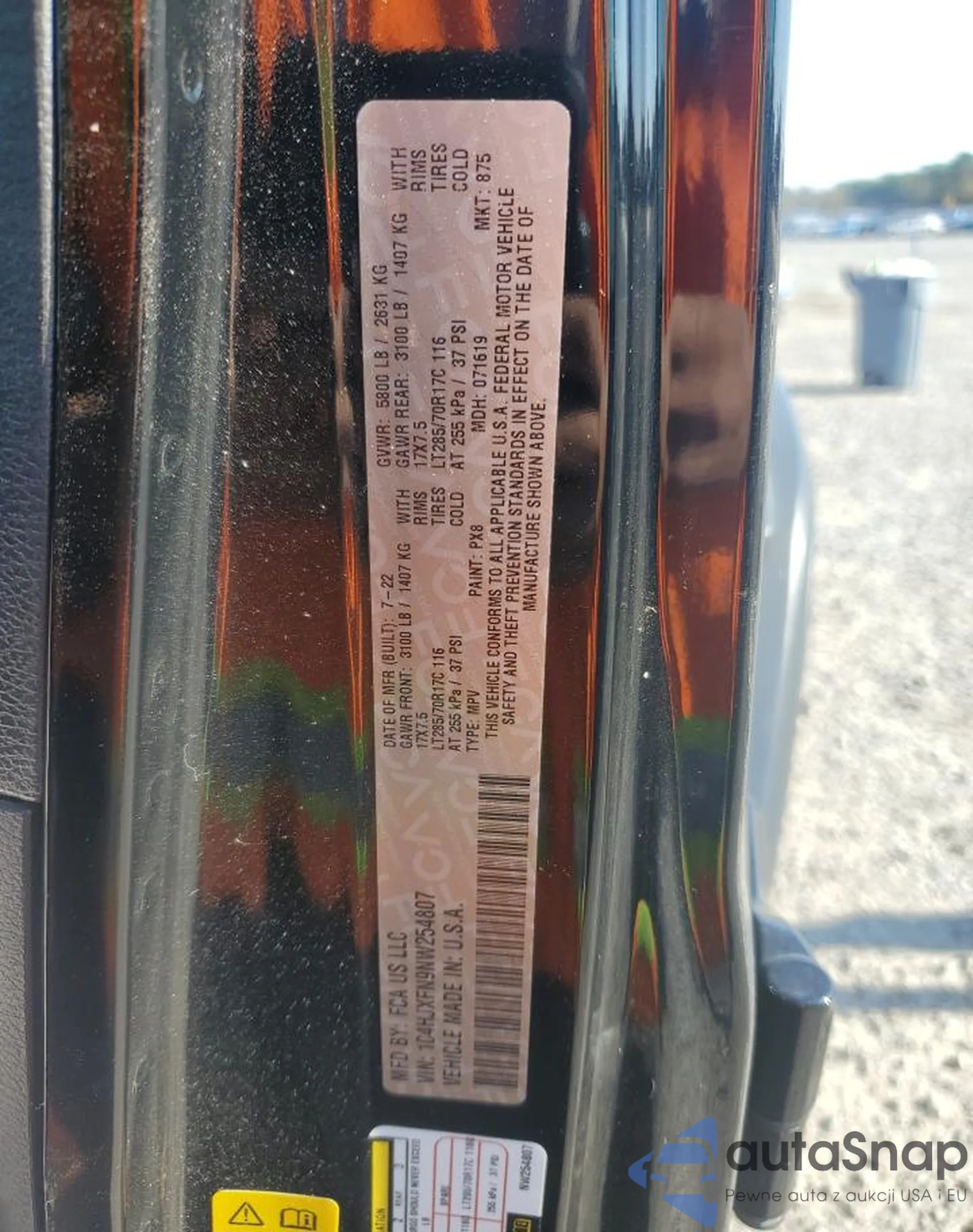 • VIN 1C4HJXFN9NW254807