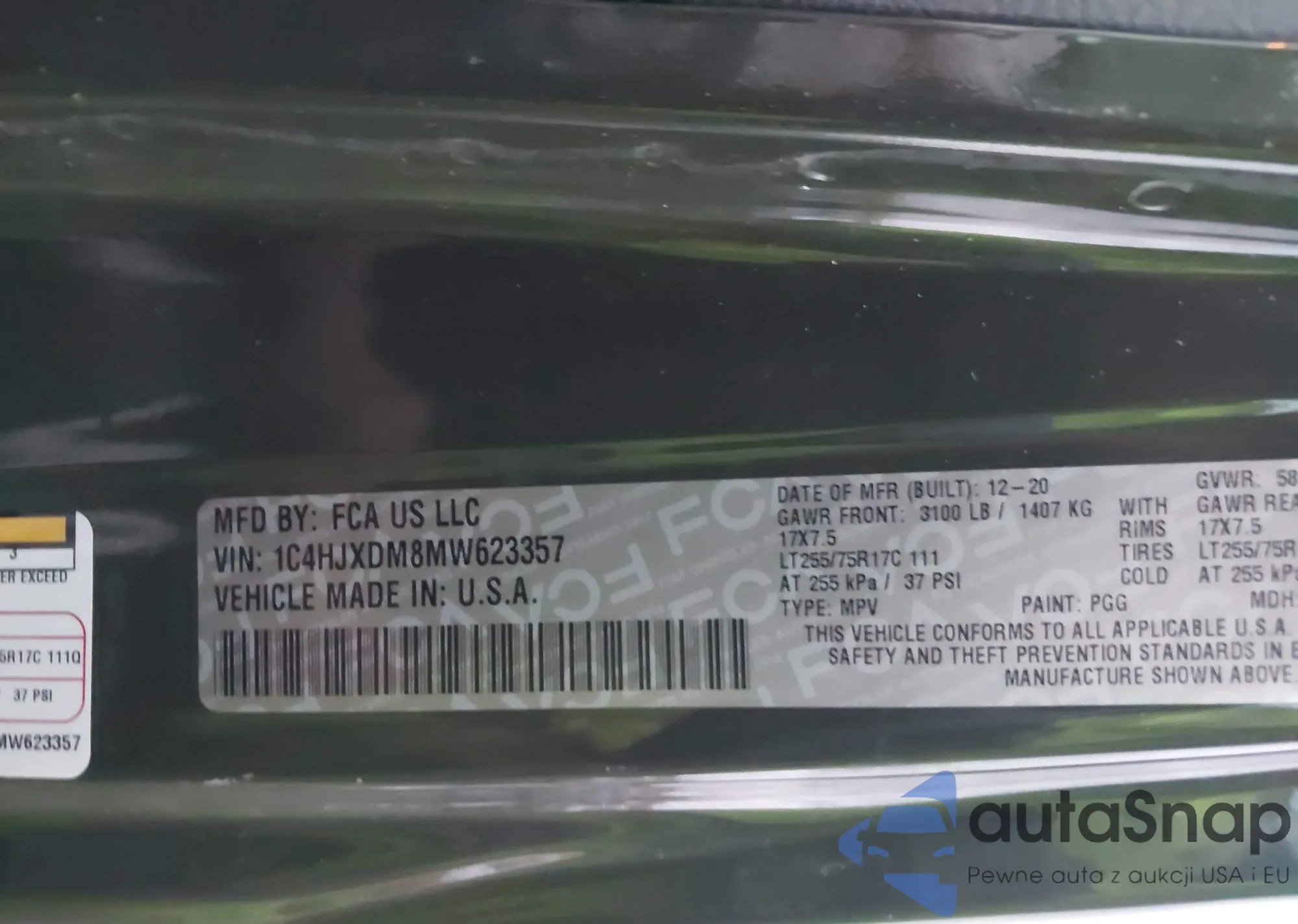 • VIN 1C4HJXDM8MW623357
