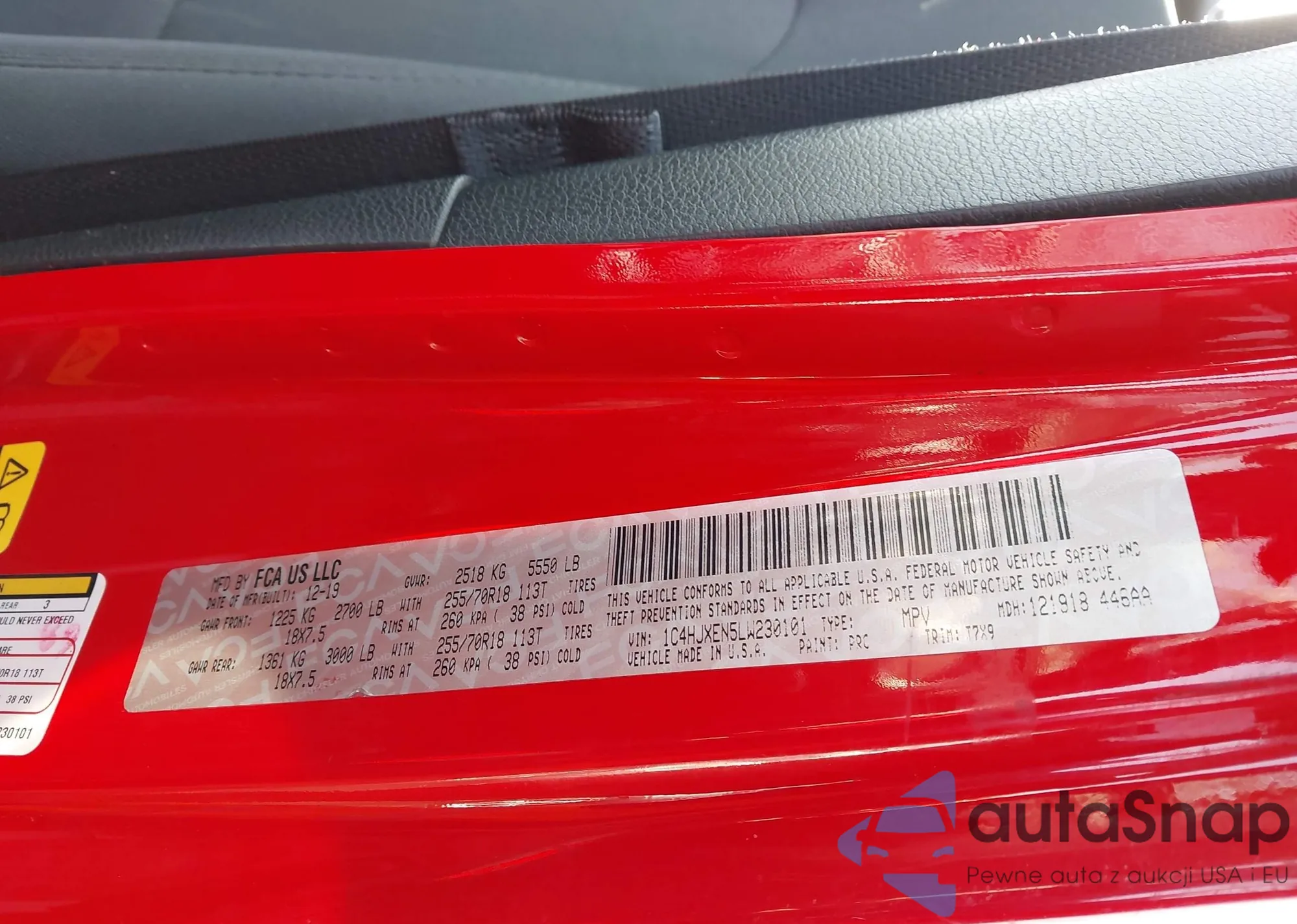 • VIN 1C4HJXDGXLW144107