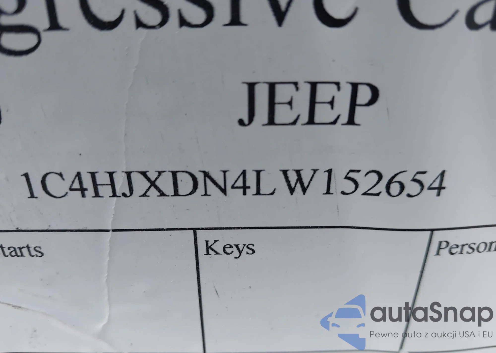 LOT: 44165236 VIN: 1C4HJXDN4LW152654