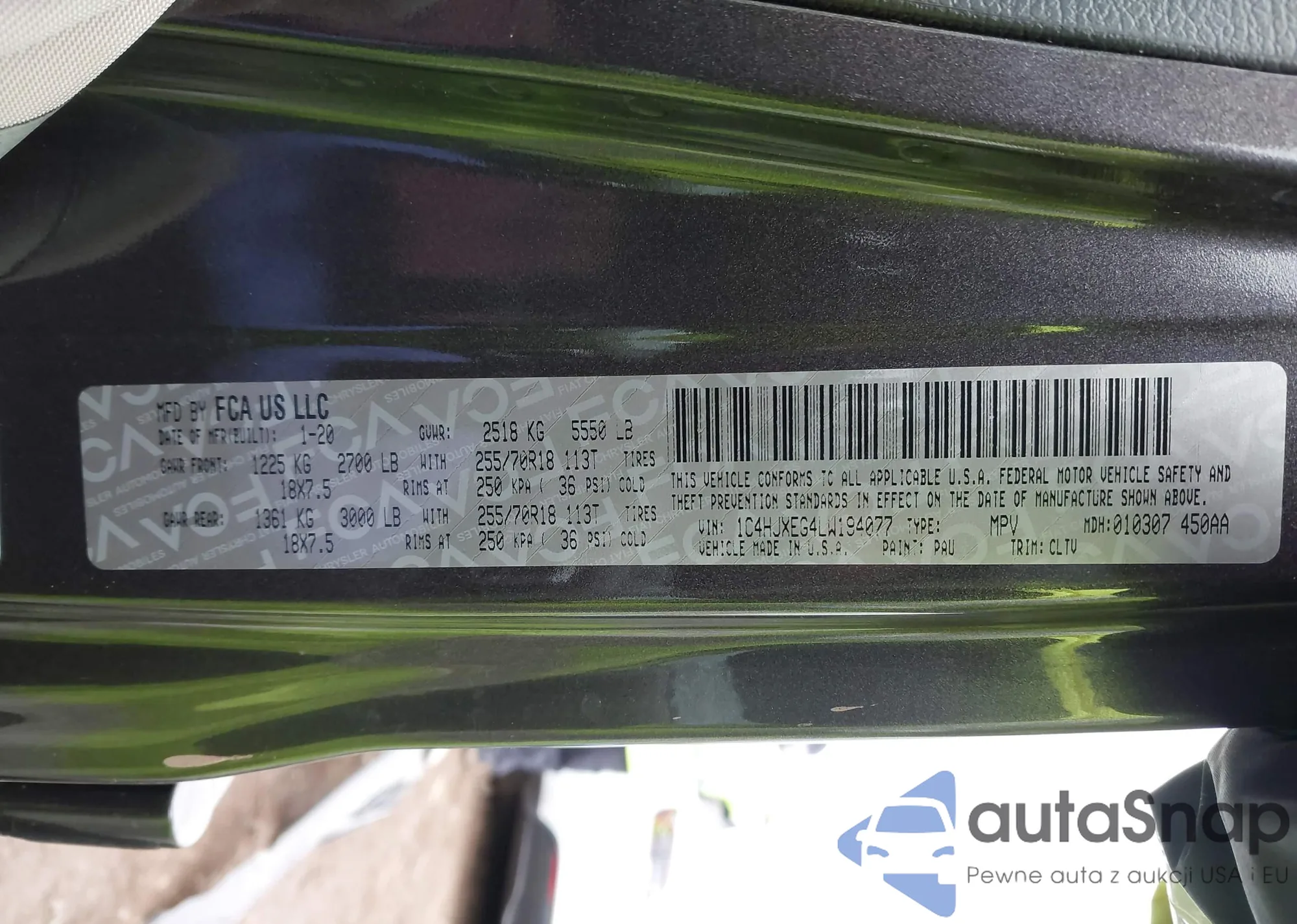• VIN 1C4HJXEG4LW194077