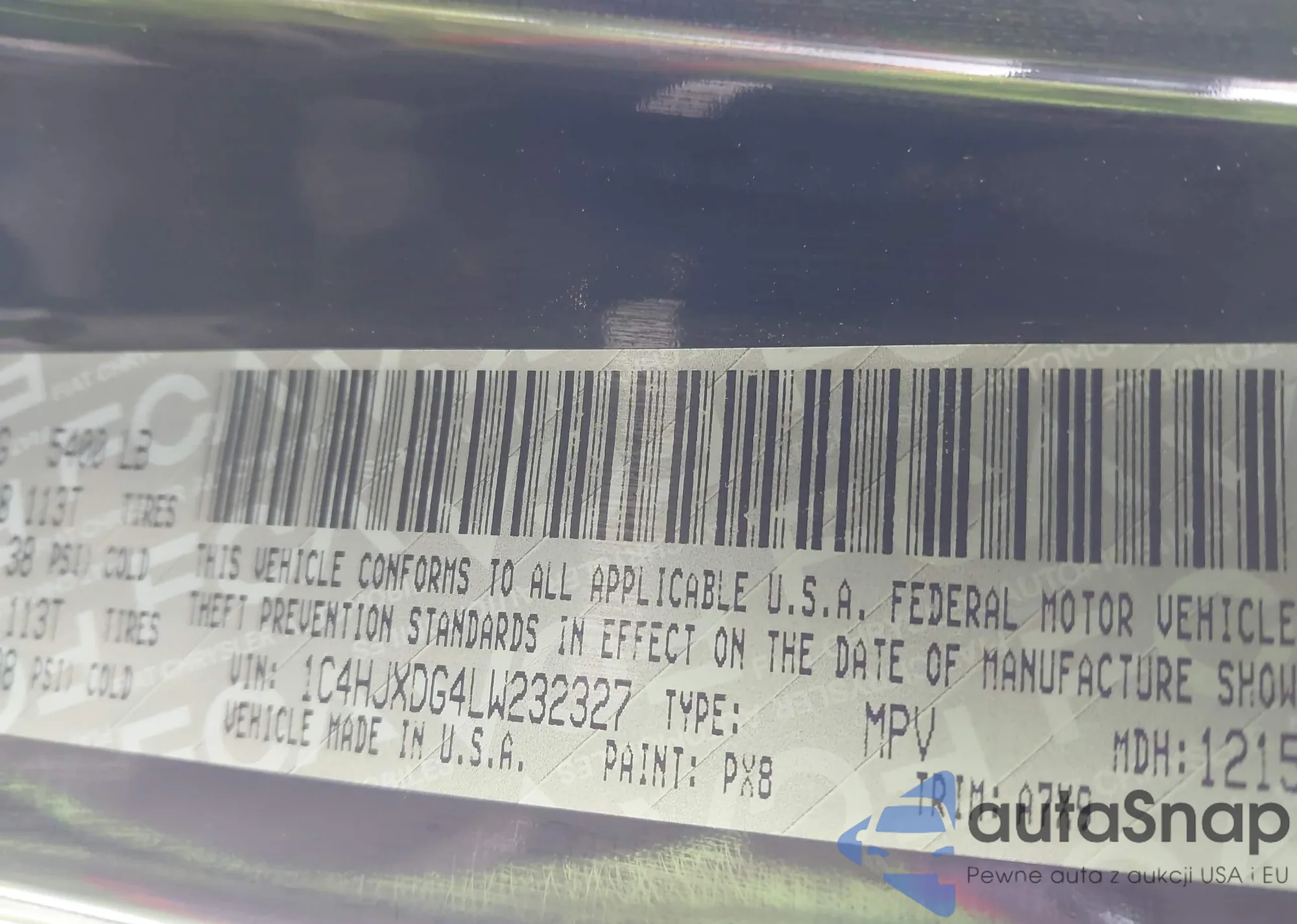 • VIN 1C4HJXDG4LW232327
