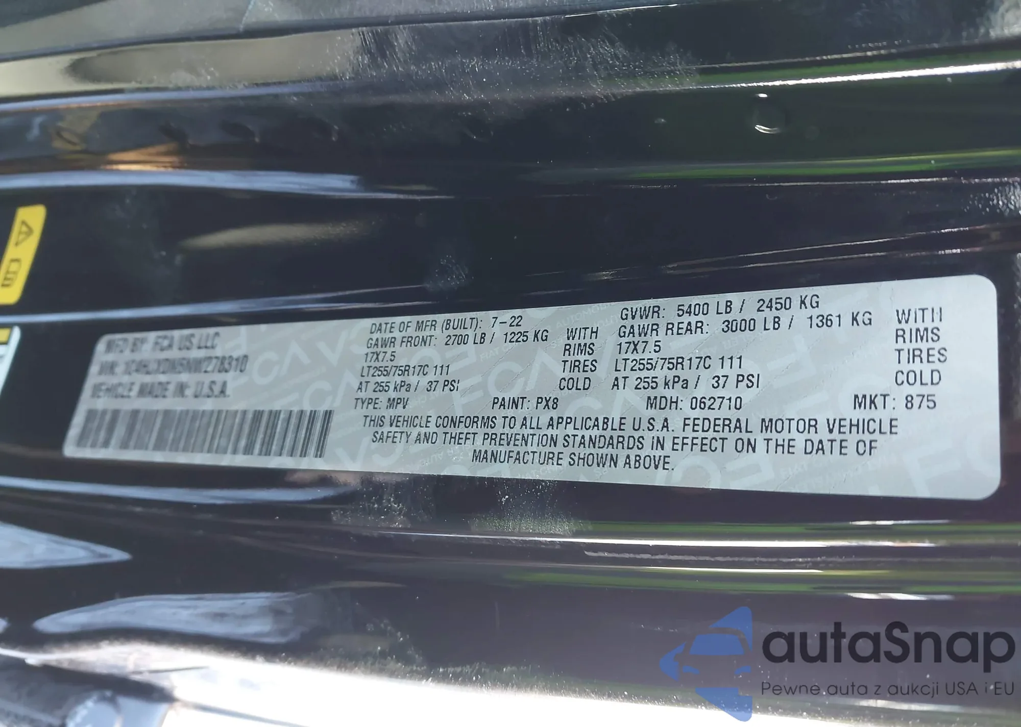 • VIN 1C4HJXDN6NW278310