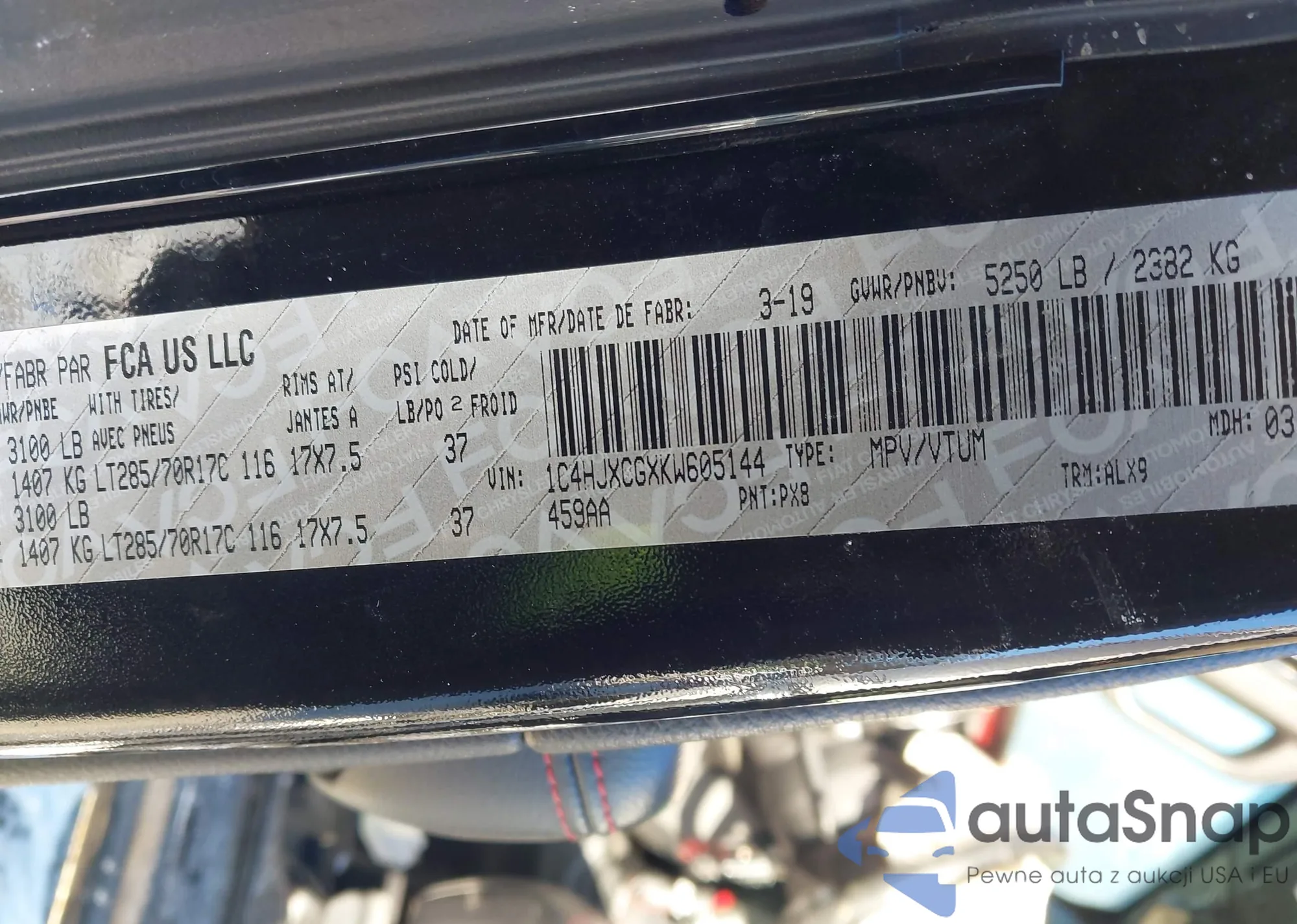 • VIN 1C4HJXCGXKW605144